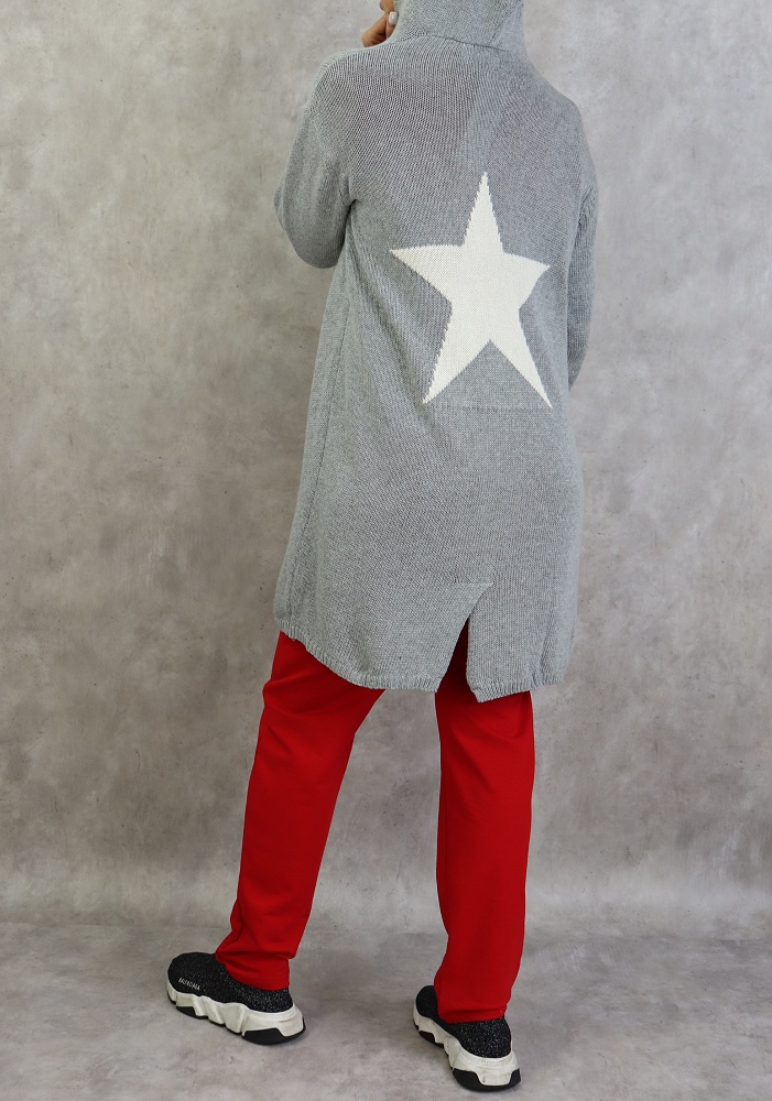 Gilet femme mi-long a capuche brode d'une etoile au dos de marque Amelis Paris - Couleur gris