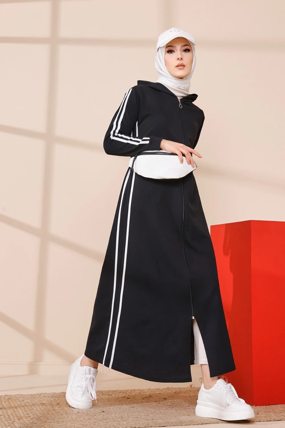 Ensemble Sweat à capuche et pantalon - Survêtement pour femme musulmane - Couleur blanc, noir et Brique - REF. 32540 (28.00 €)