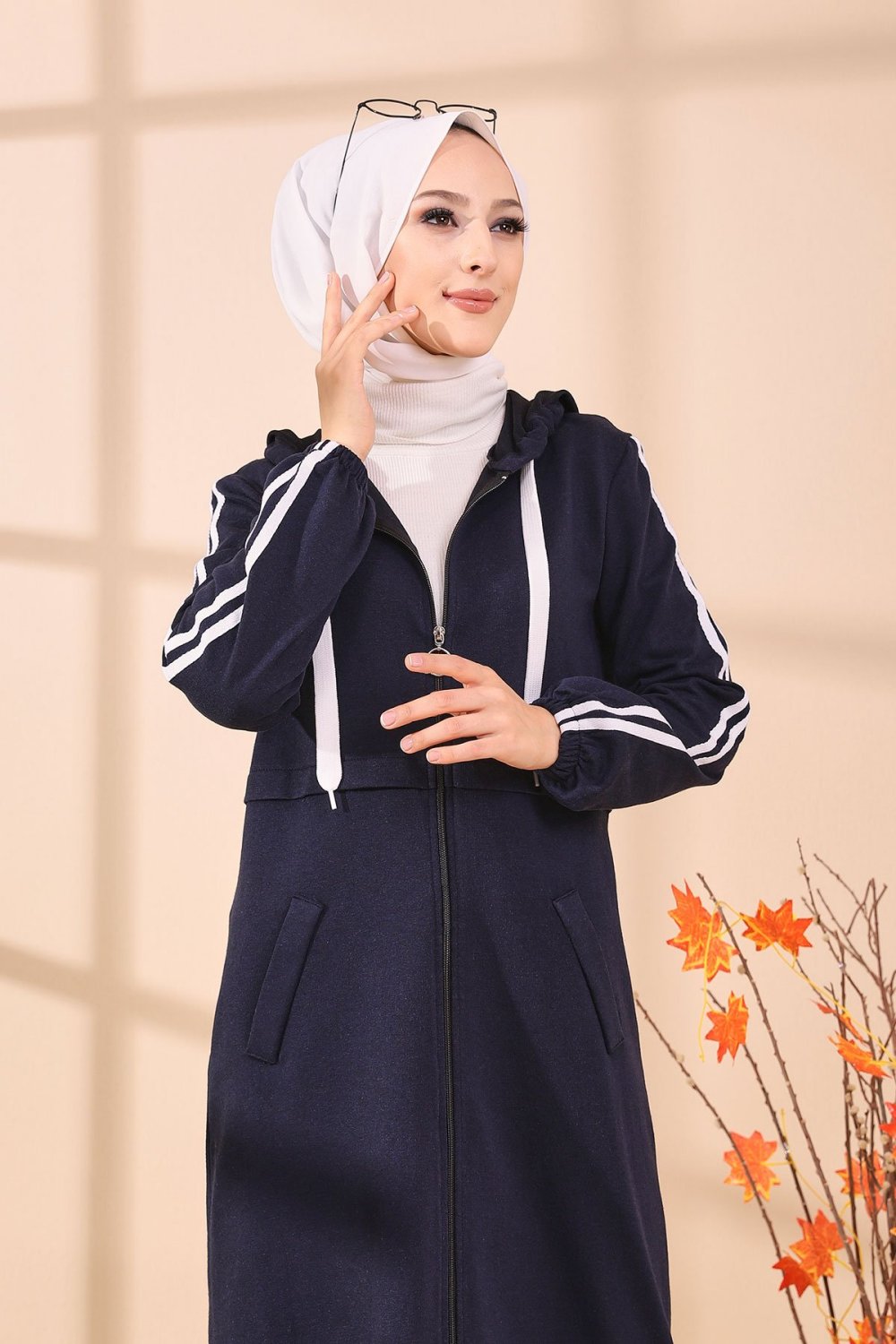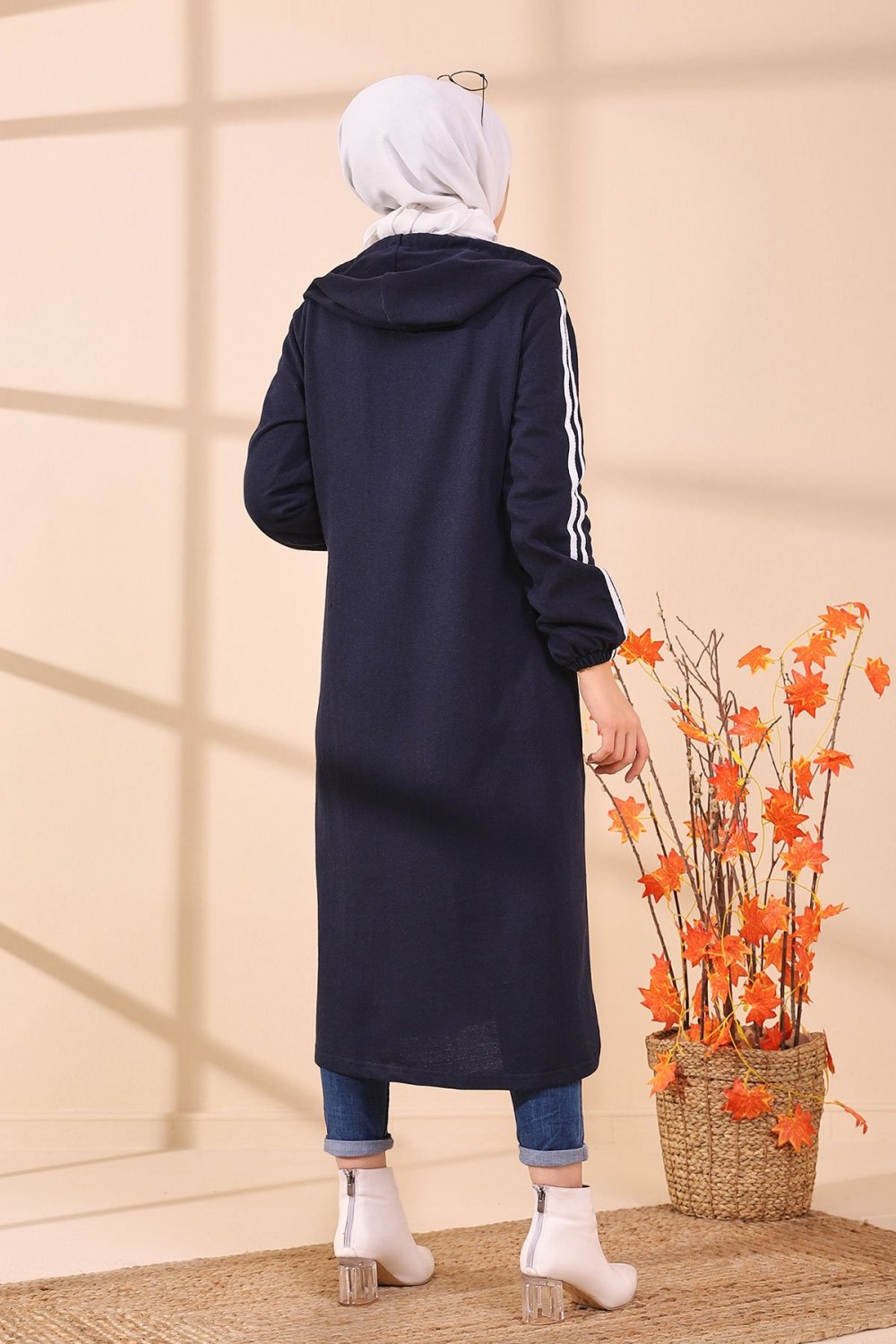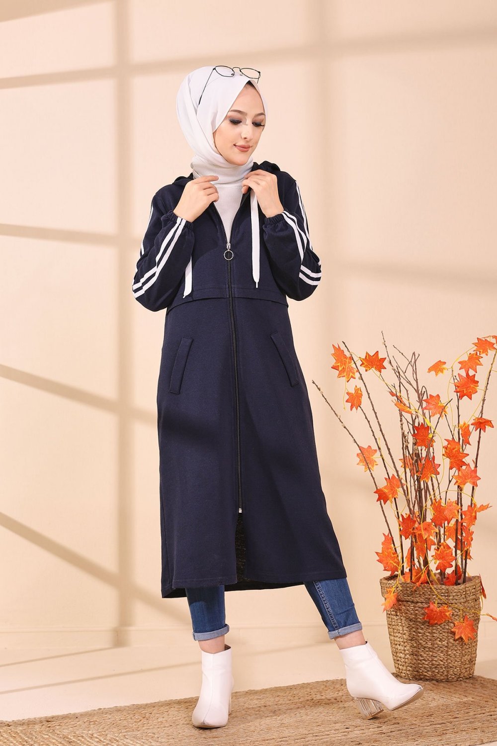 Gilet long avec capuche pour femme musulmane - Couleur bleu marine Vetement & Accessoire