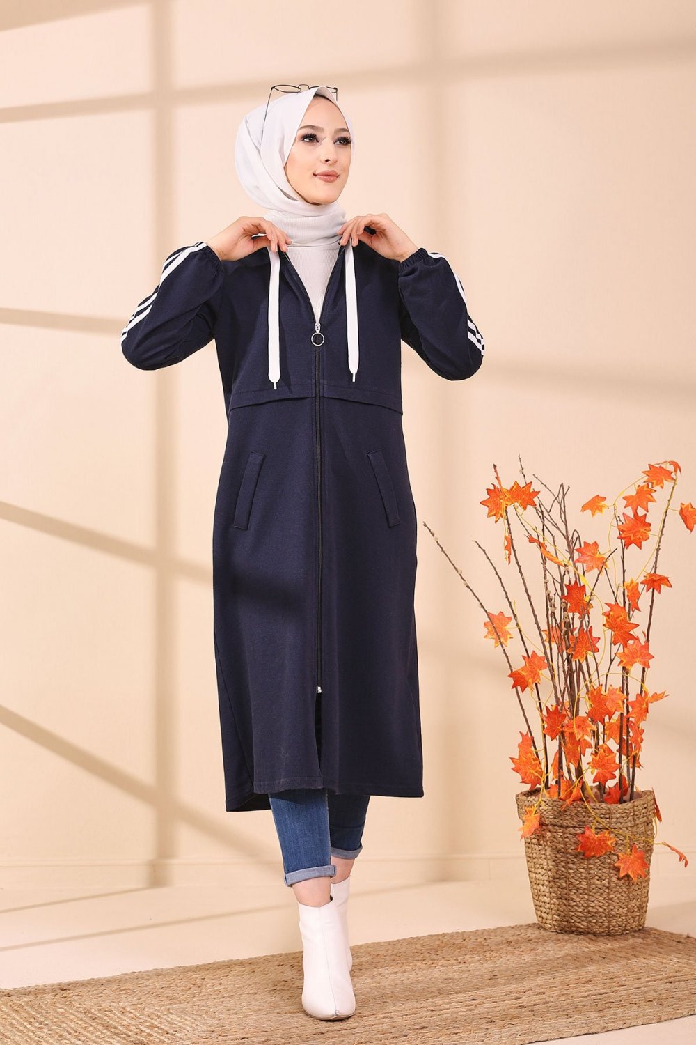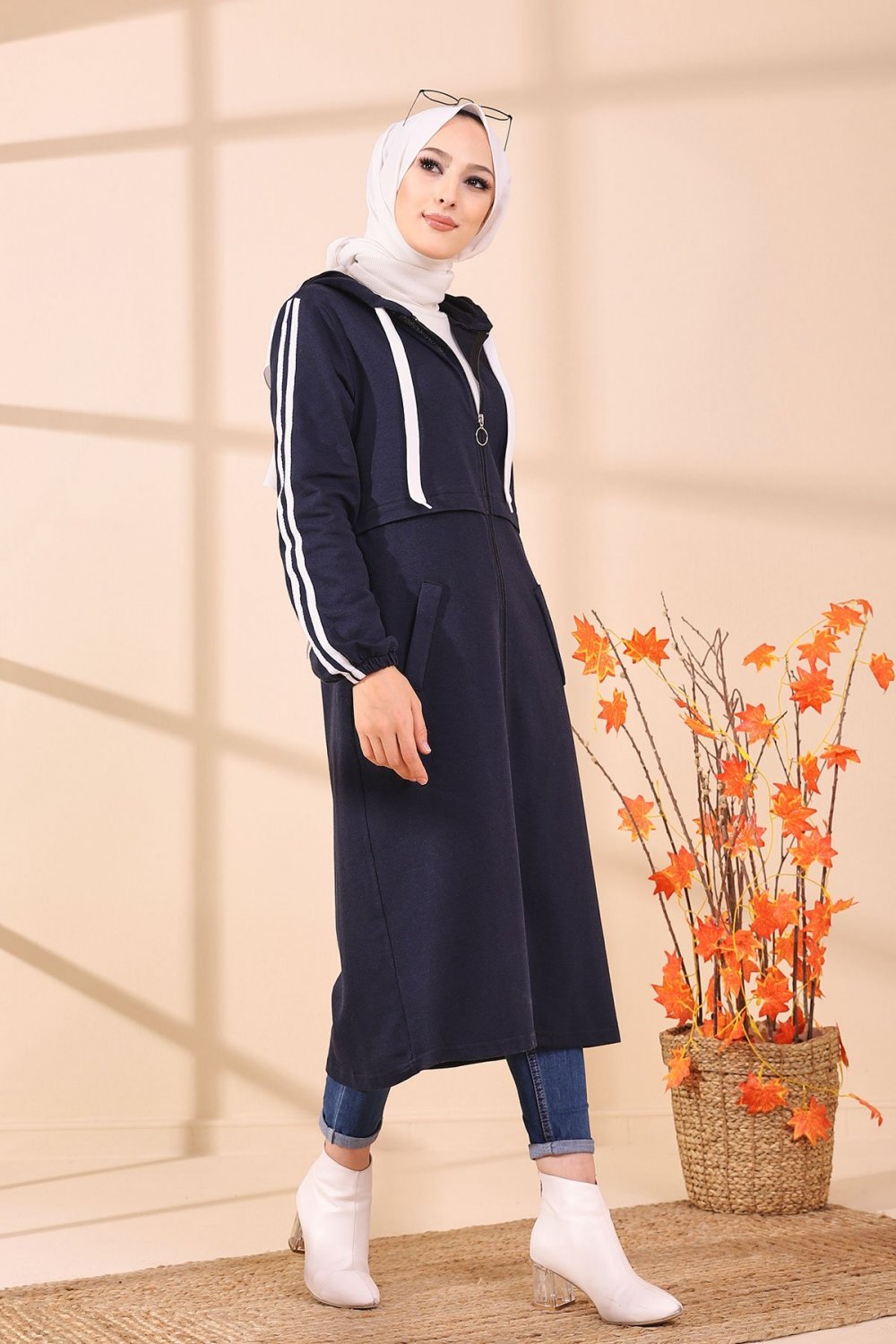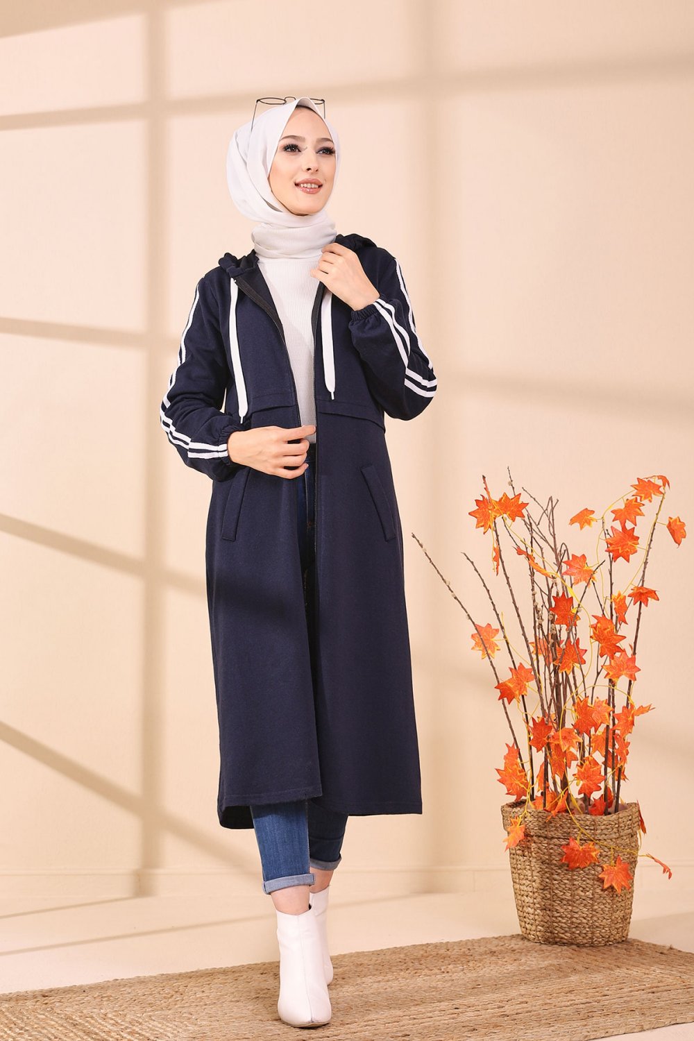 Gilet long avec capuche pour femme musulmane - Couleur bleu marine Vetement & Accessoire