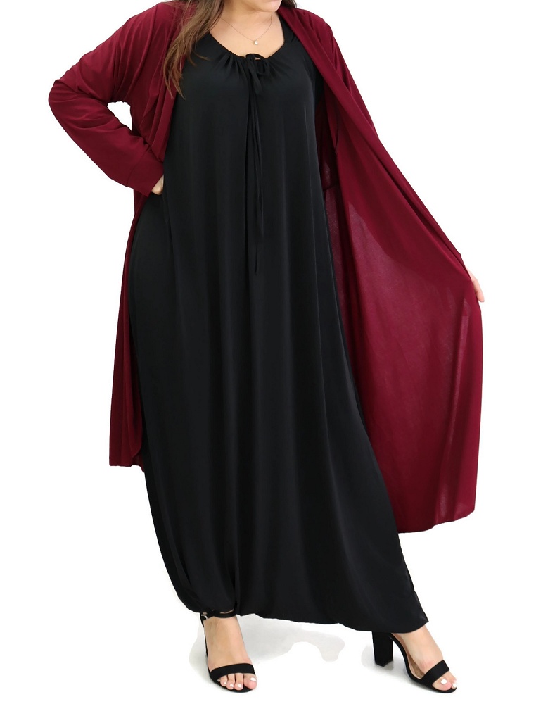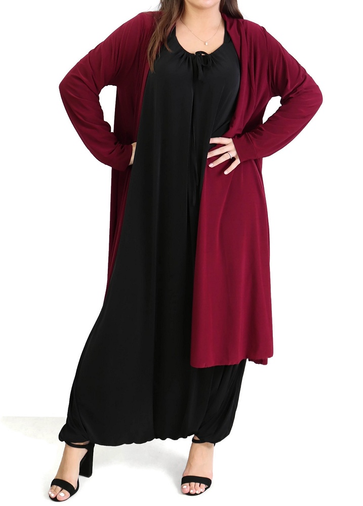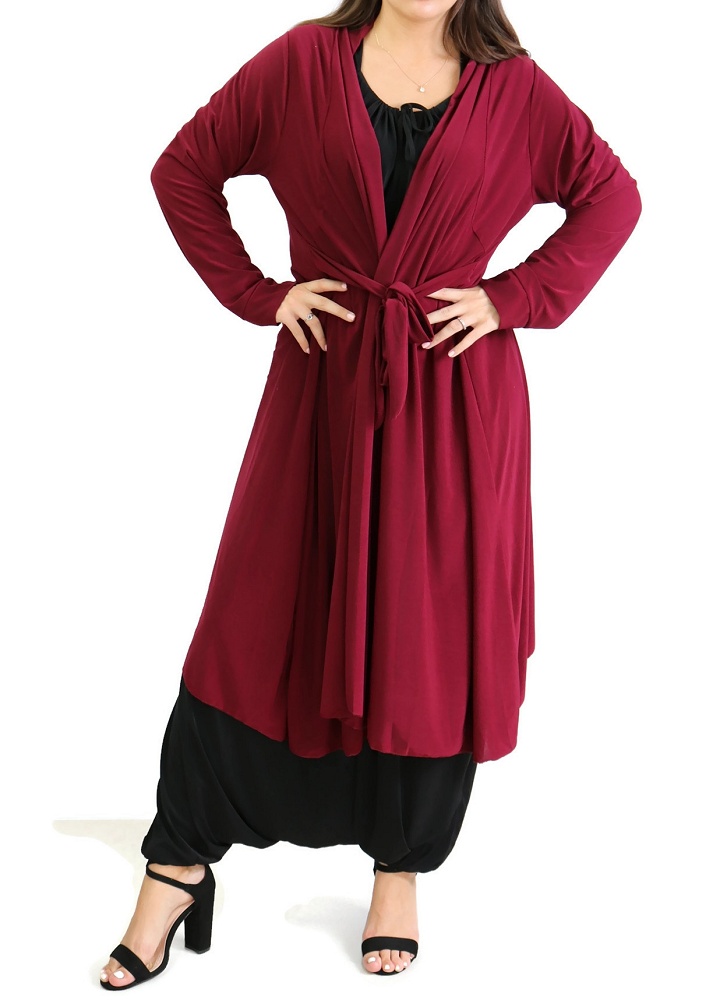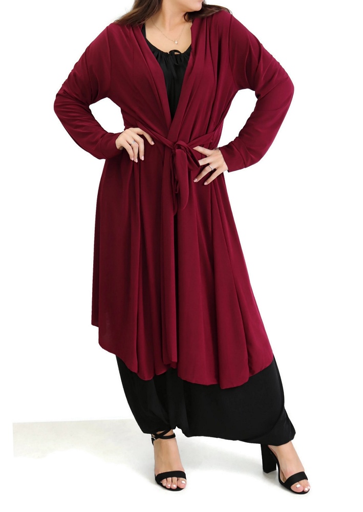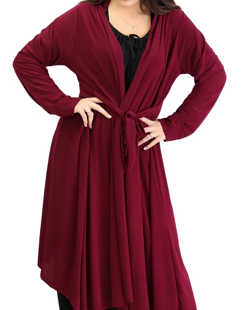 Gilet long extra large (Grande taille) à manches longues pour femme - Couleur Bordeaux Vetement & Accessoire