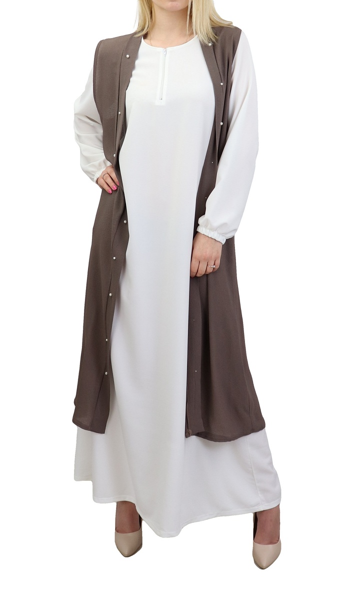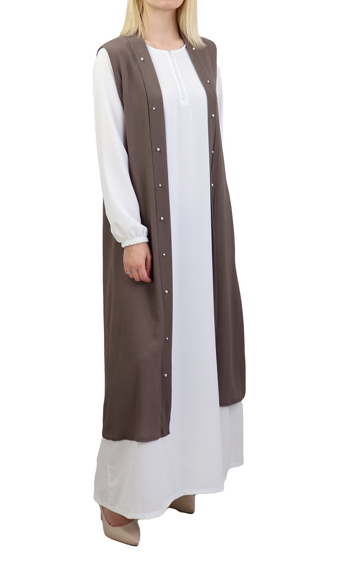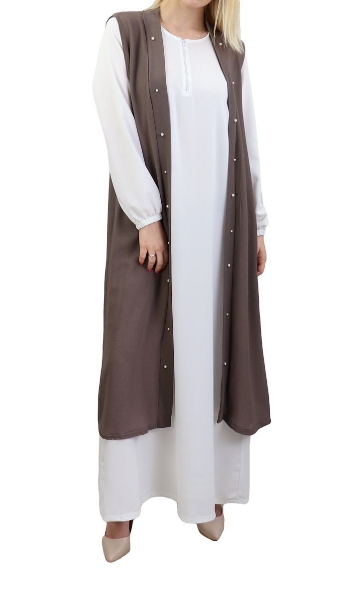 Gilet long perlé de couleur taupe Vetement & Accessoire