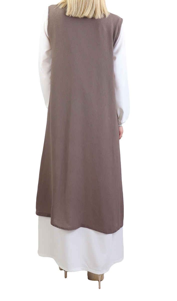 Gilet long sans manche avec ceinture (Tunique longue et mastour pour femme voilée) - Couleur Prune - REF. 34696 (18.00 €)