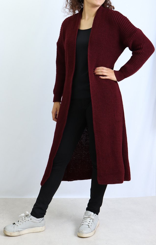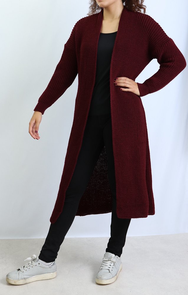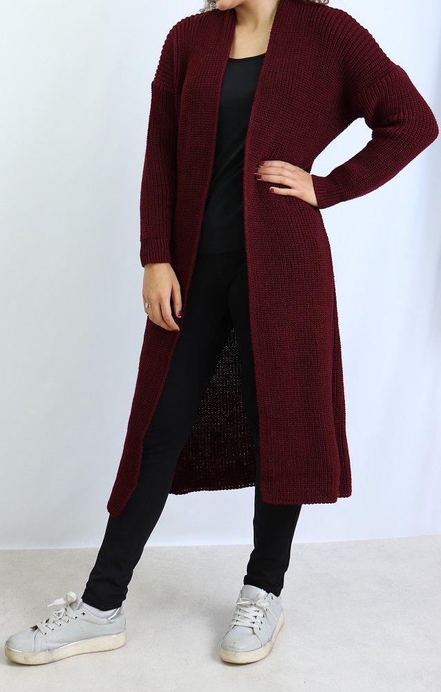 Gilet maxi long en maille - Couleur Bordeaux Vetement & Accessoire