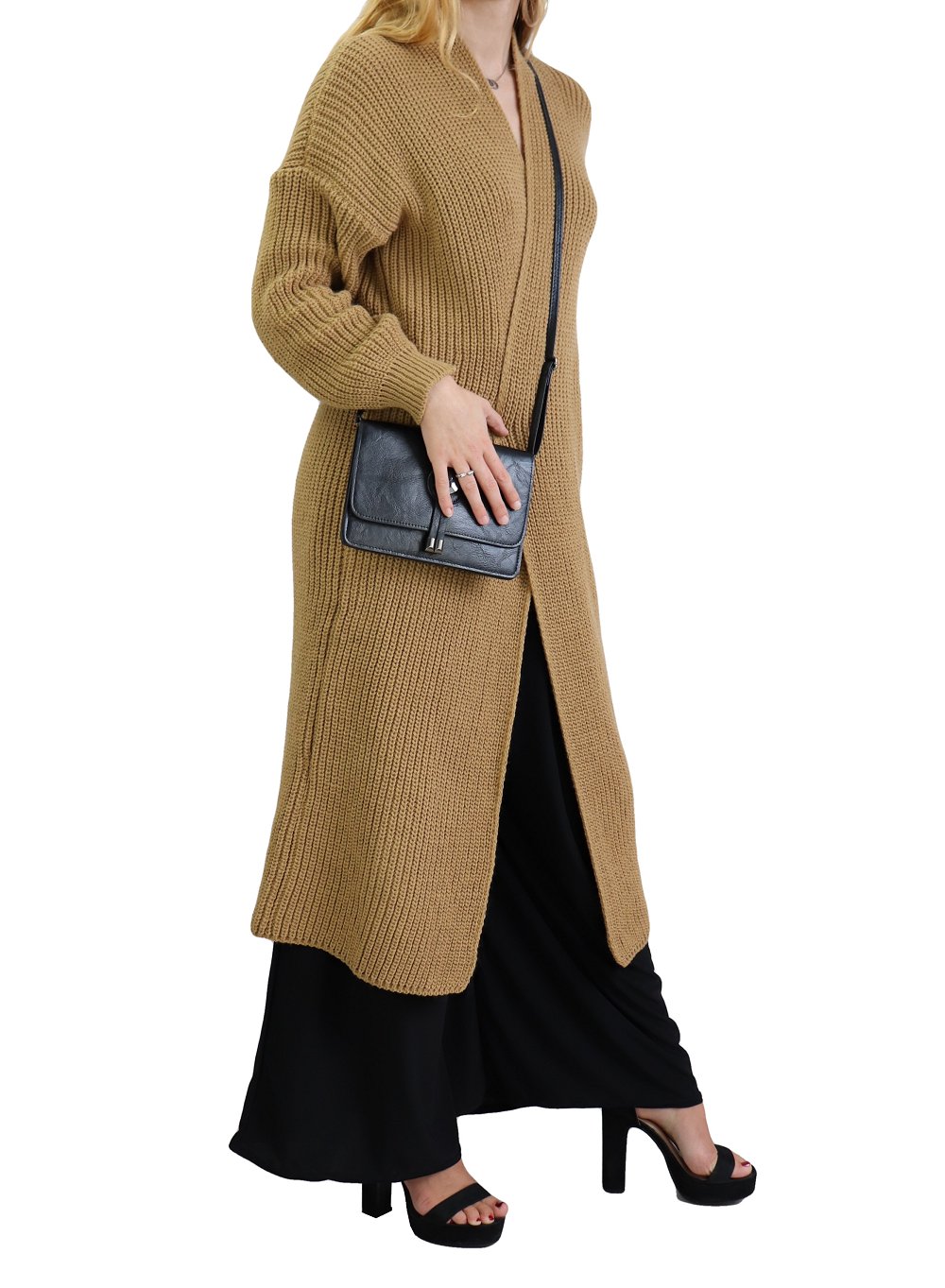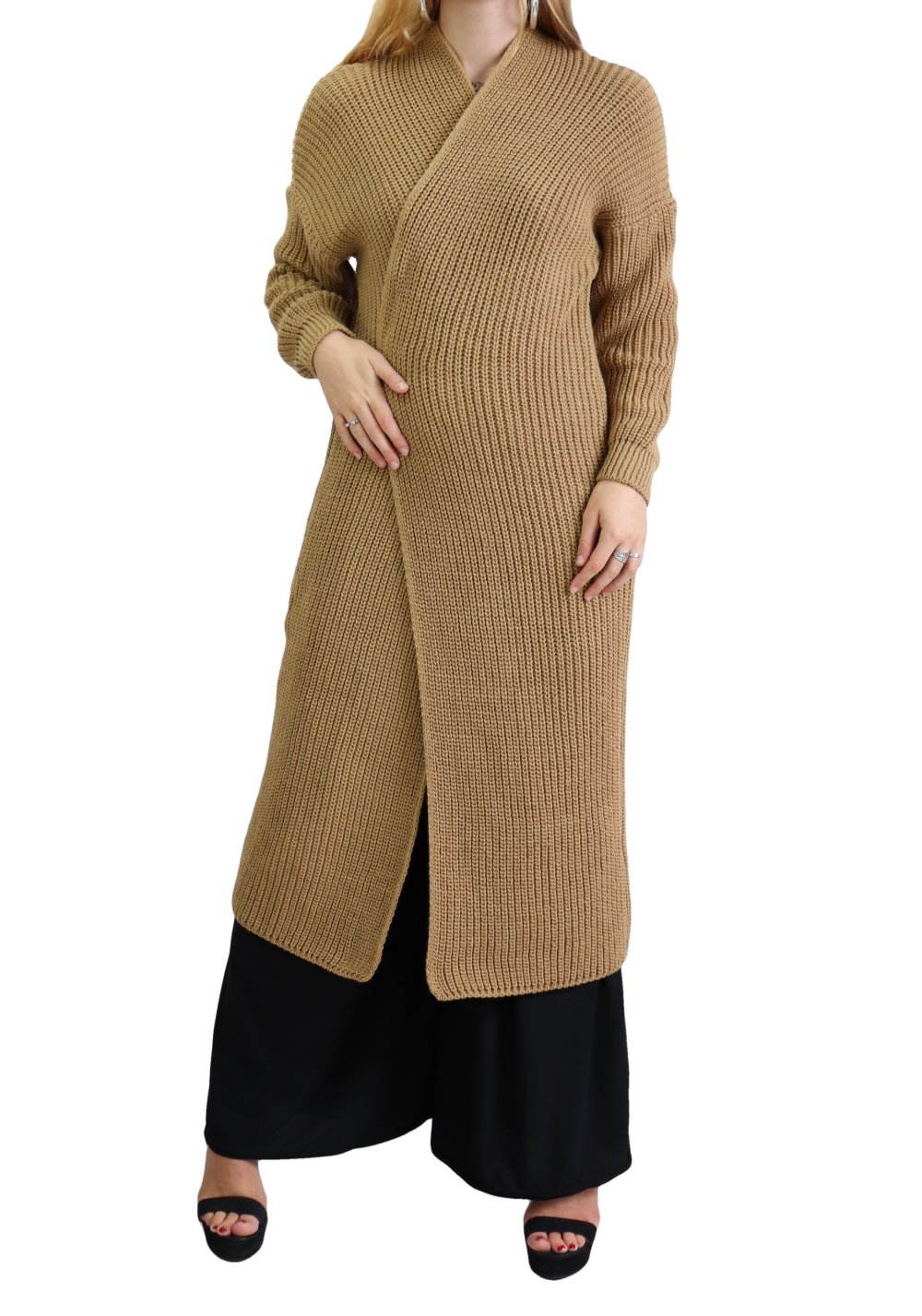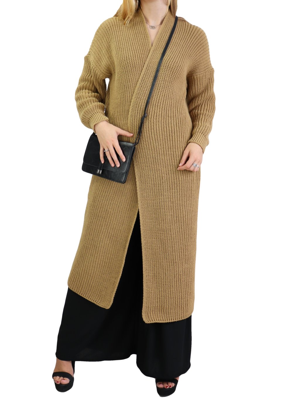 Cardigan Gilet long sans manches - Couleur Camel - REF. 33092 (19.90 €)