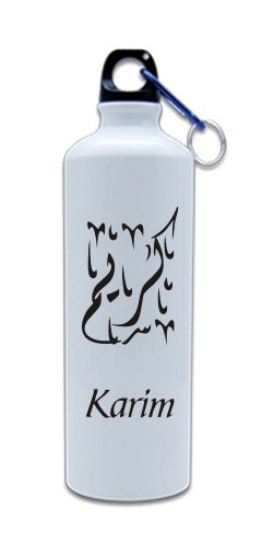 Gourde blanche personnalisable (prénom/message des deux côtés) avec bouchon noir à vis et mousqueton Incassable, légère et étanche, s'emmène partout et se glisse facilement dans un sac, idéal lors d'activités sportives.