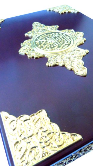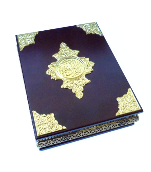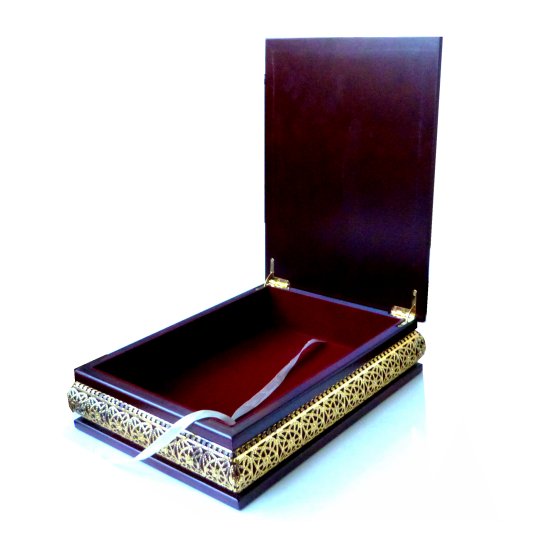 Grand Coffret Coran en bois de-luxe avec jolie motifs metalliques dores