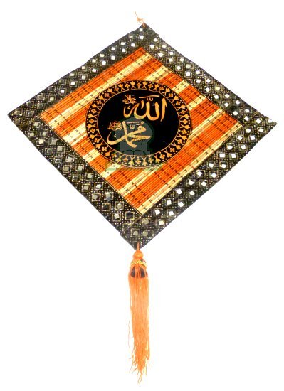 Grand Fanion sous forme de losange en paille avec l'inscription du nom d'Allah et du Prophete (Saw)