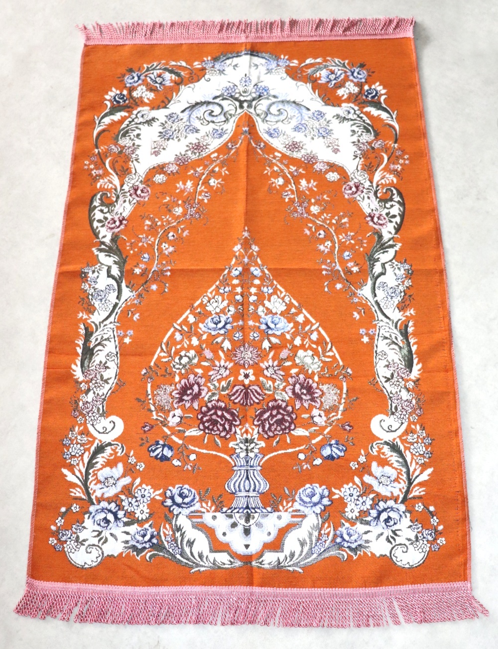 Grand Tapis de prière avec décorations islamique tissé en chenille (sajjada) couleur orange Deco & Cadeau