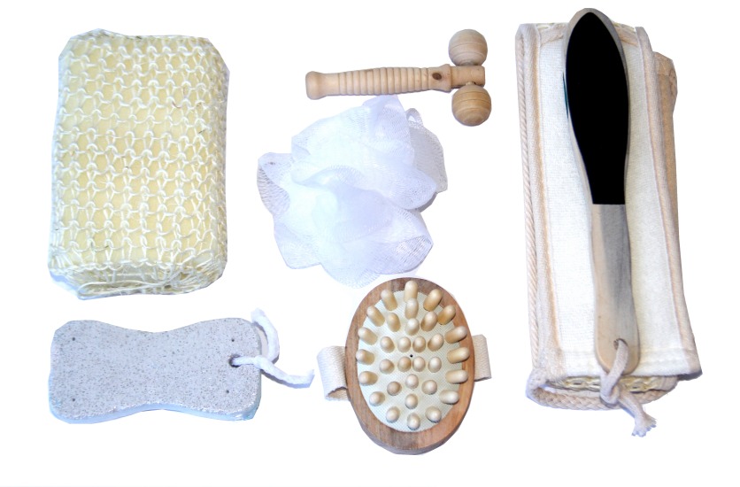 Faites plaisir à votre corps avec le marteau de massage et la brosse en bois, gardez une bonne hygiène avec la rose de douche et l'éponge exfoliante. Débarrassez-vous des peaux mortes à l'aide de la pierre ponce et utilisez la râpe pour des pieds plus doux.