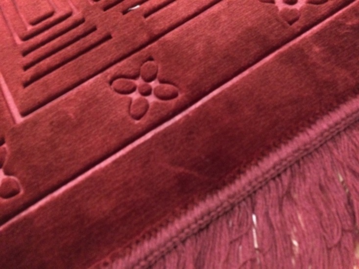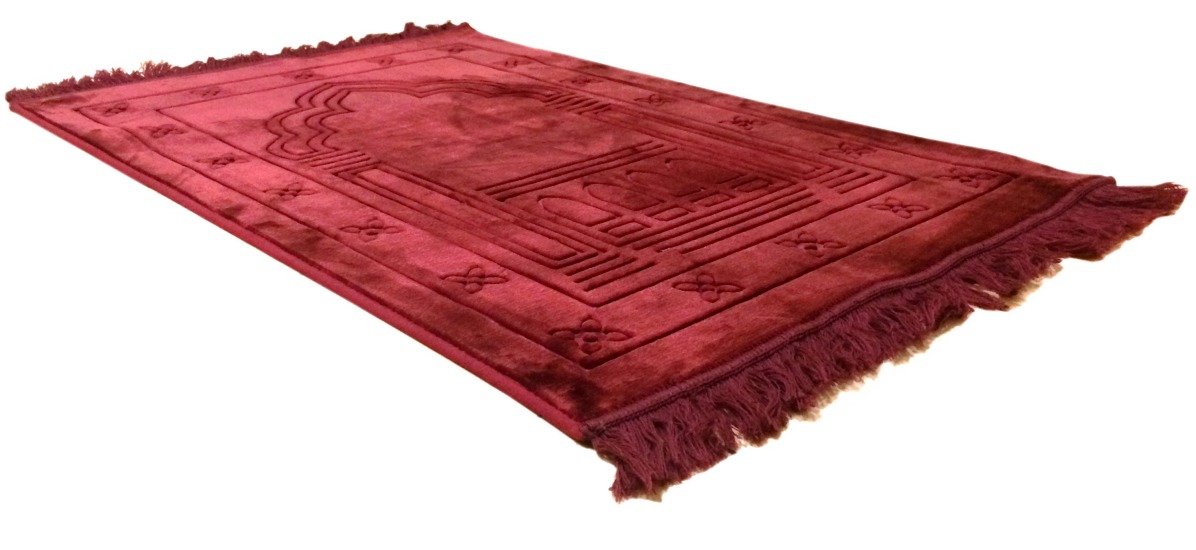 Grand tapis de luxe (80 x 120 cm) épais avec dessous antidérapant. Très doux au toucher avec motif sous forme de Mihrab (indiquant la direction du tapis pour ne pas mélanger les pieds et la tête. Plusieurs autres couleurs sont disponibles.