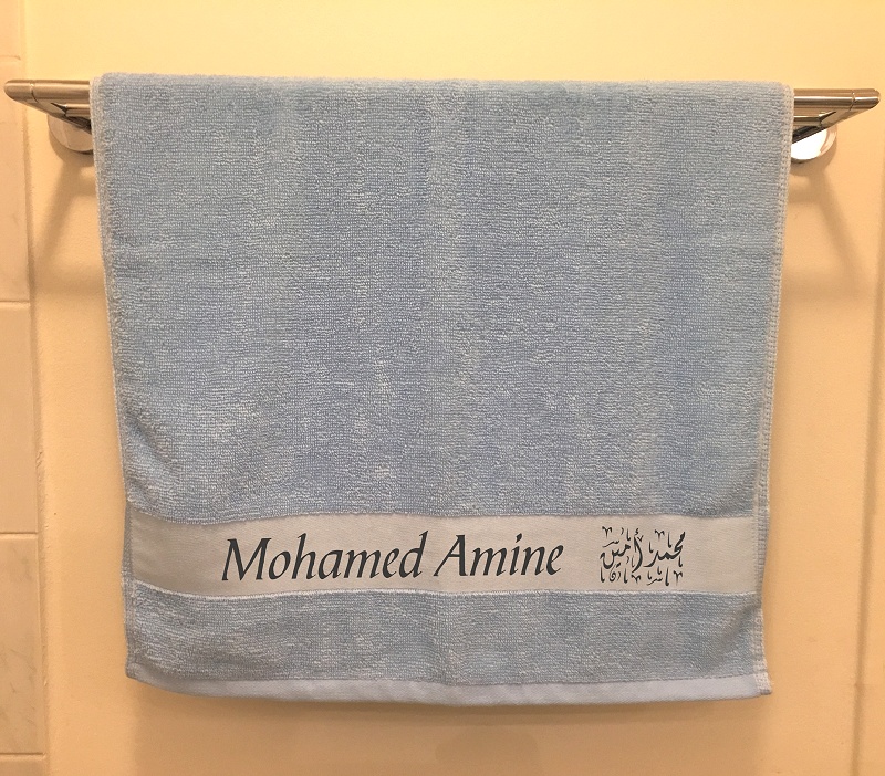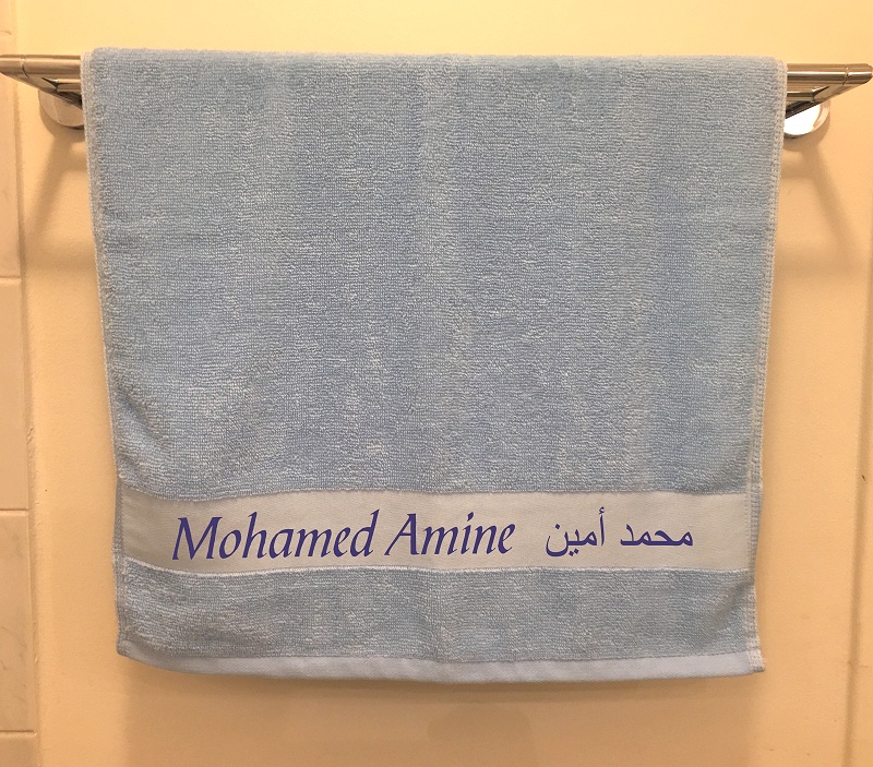 Serviette homme bleu ciel avec prénom musulman-arabe au choix - REF. 9063 (5.90 €)