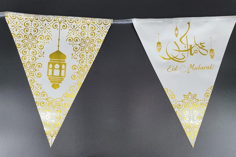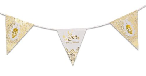 Guirlandes en plastique Eid Mubarak 6 m de long (Fanions Special fete musulmane de l'Aid) - Couleur dore