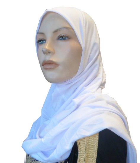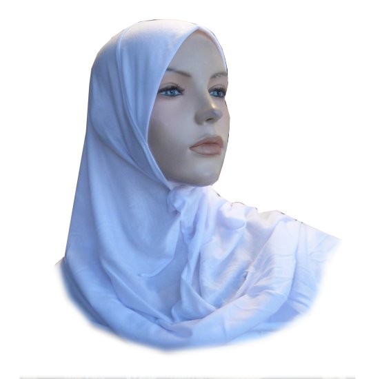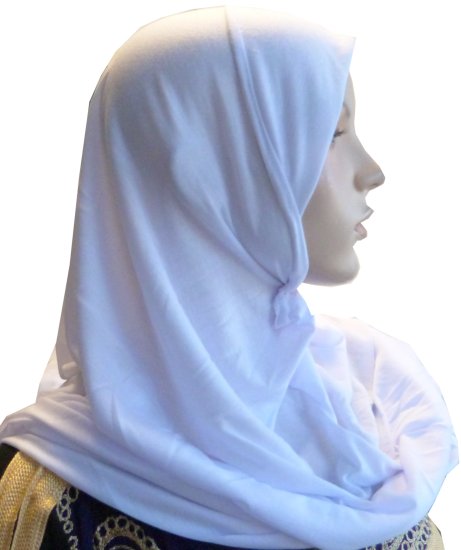 Hijab blanc une pièce simple mi long (environ 75cm)