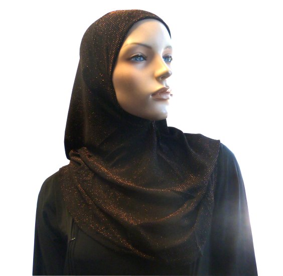 #TITRE-EN: Black hijab with orange glitter #DESCR-EN: Nice black hijab with orange glitter. #TITRE-DE: Hidschab Schwarz mit orangen Pailletten #DESCR-DE: Schöner schwarzer Hidschab mit orangen Pailletten.