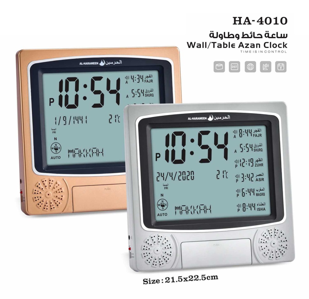 Horloge dorée avec calcul automatique des heures de prières et adhan (appel à la prière pour les 5 prières) - Al Harameen Clock HA-4010 Produit electronique