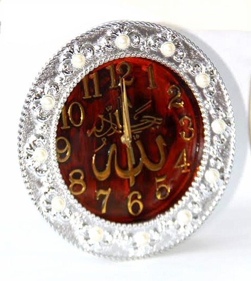 Cette horloge style islamique avec cadre argenté et inscription Allah en doré est un objet fonctionnel au design harmonieux. Elle constitue une très bonne idée cadeau pour un foyer musulman ou autre.