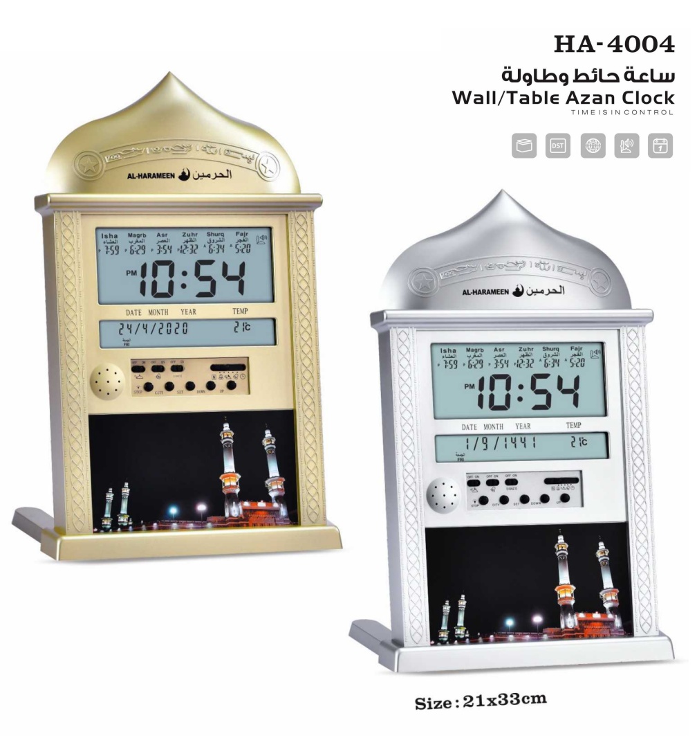 Montre Horloge Pendule (double écran) avec horaires des prières et appel à la prière (Adhan automatique) - Al-Harameen Clock (HA-4012) - REF. 8824 (45.00 €)