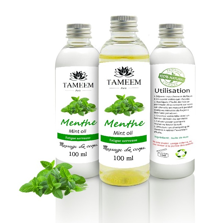 L’huile MENTHE TAMEEM. L’huile beauté menthe, épuisement nerveux, massage des tempes ainsi que tout le corps. Ne contient ni conservateurs, ni produits chimiques.