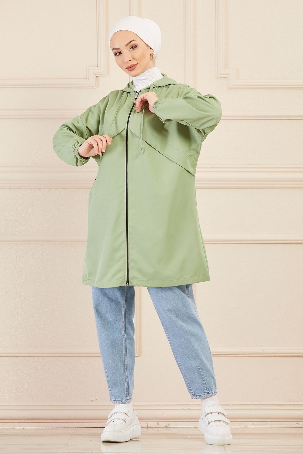 Veste zippée ample et légère mi longue (Vetement mastour pour femme voilée) - Couleur menthe - REF. 33157 (26.00 €)