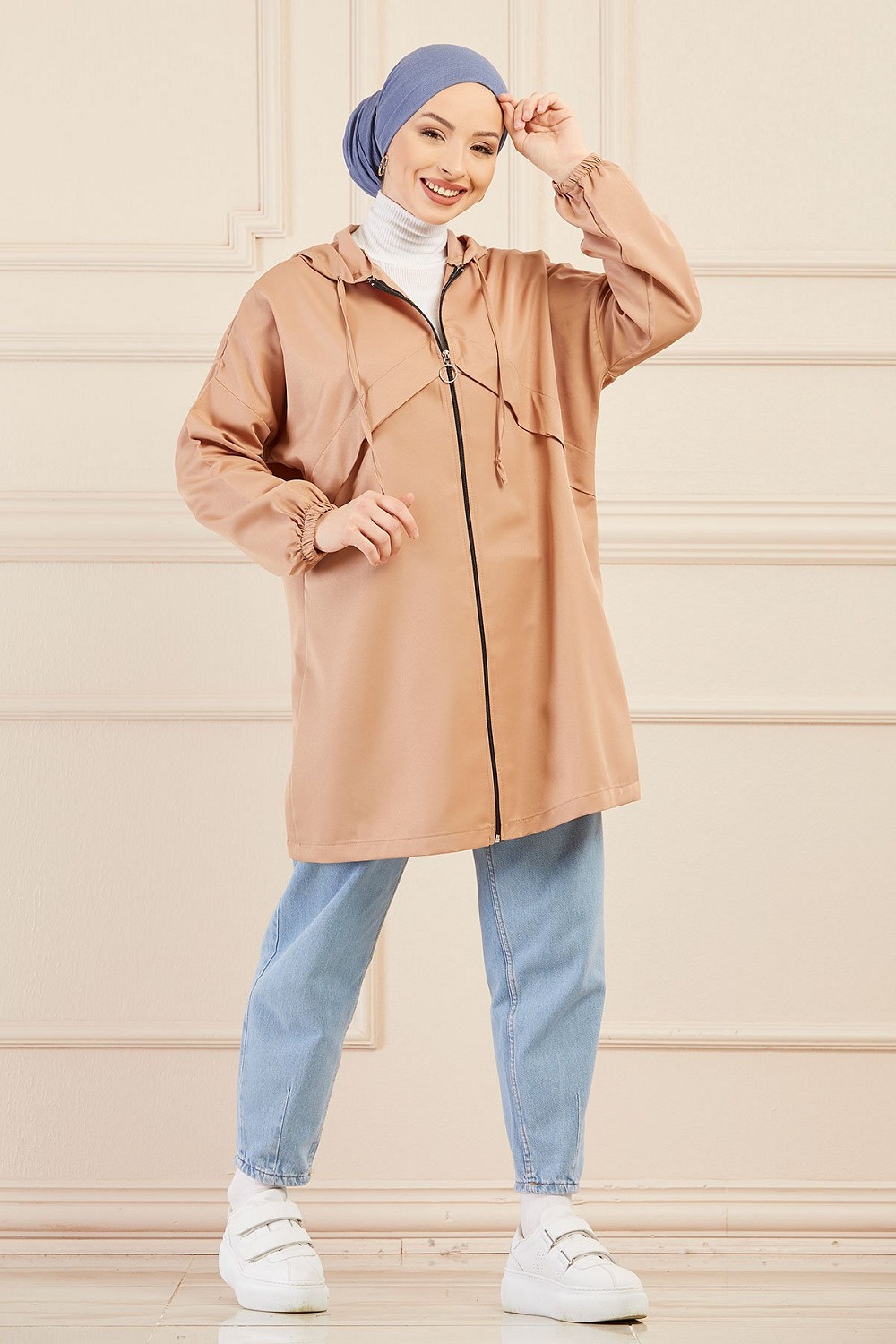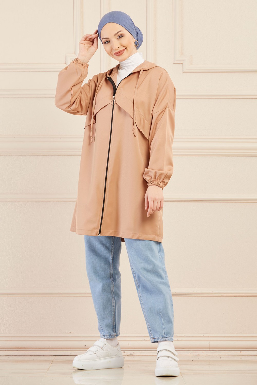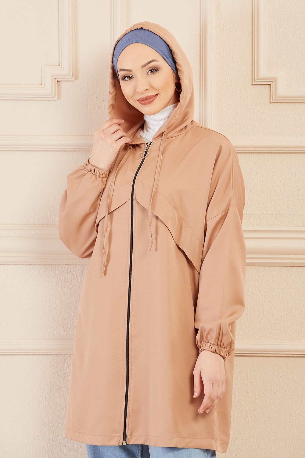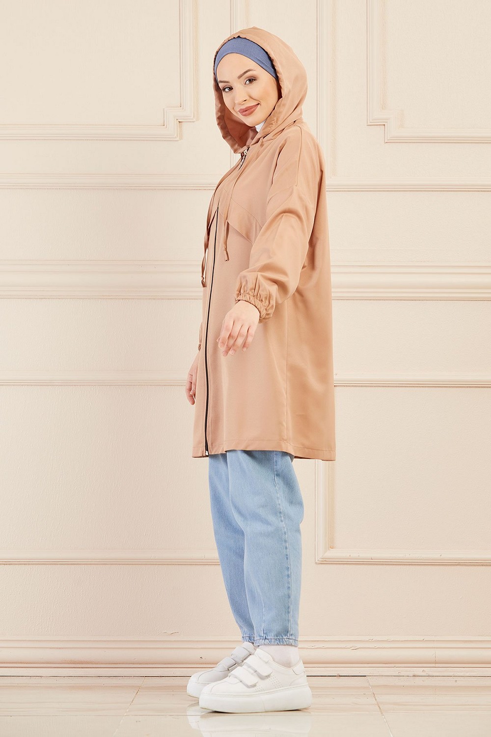 Veste Tunique boutonnée à capuche (Vetement décontracté femme hijab) - Couleur beige - REF. 31894 (19.90 €)