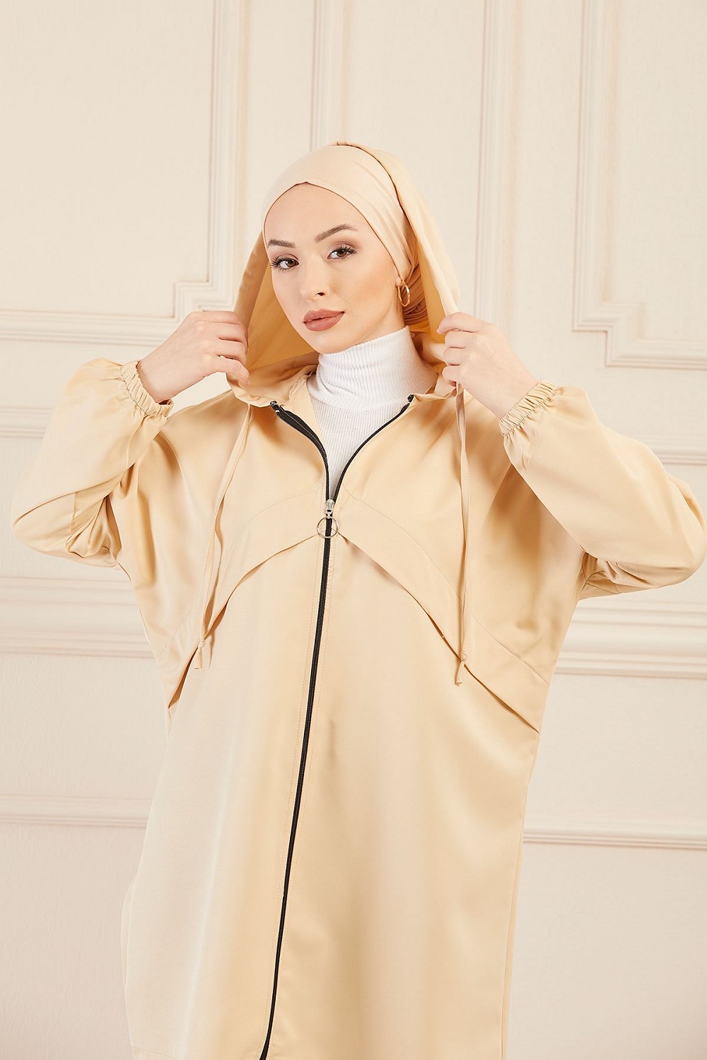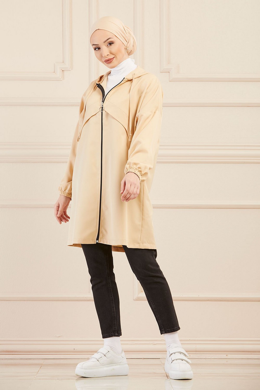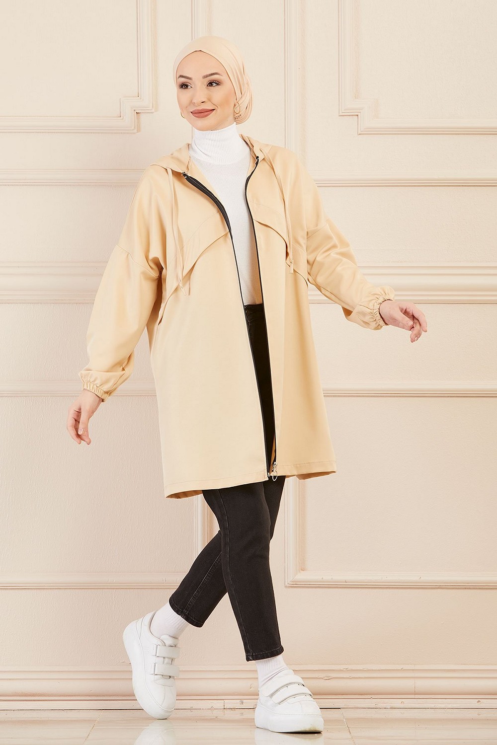 Veste moderne style décontracté avec fermeture zip (Vetement femme voilée) - Couleur beige - REF. 32849 (24.90 €) - En Promotion à 19.00 €