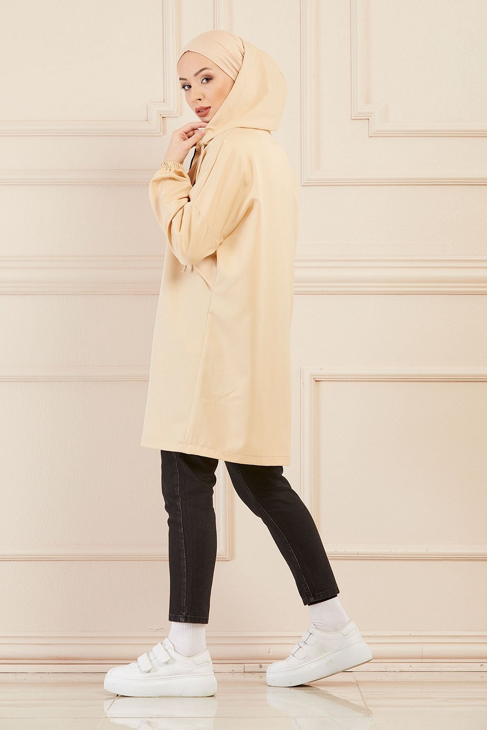 Veste Tunique boutonnée à capuche (Vetement décontracté femme hijab) - Couleur beige - REF. 31894 (19.90 €)