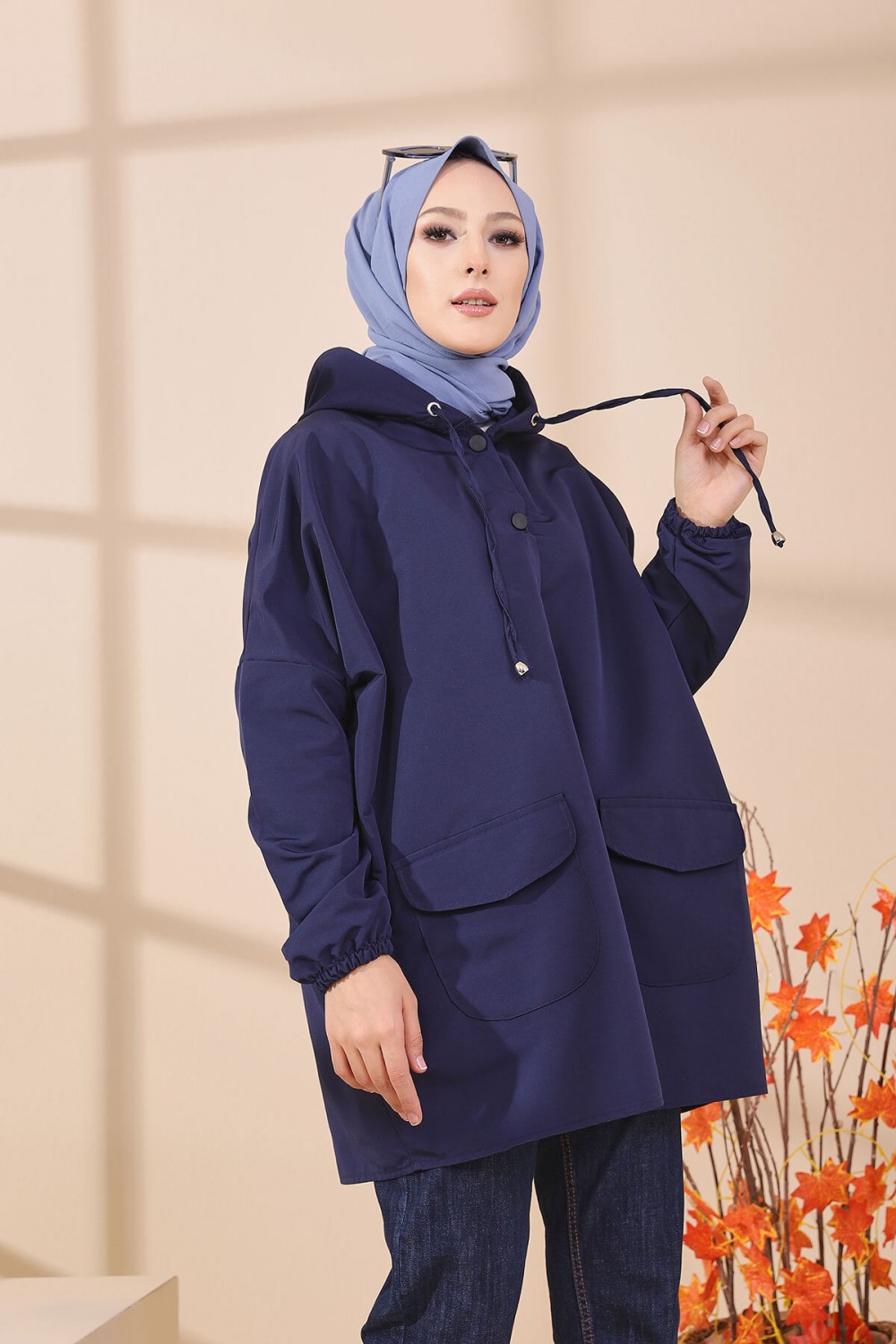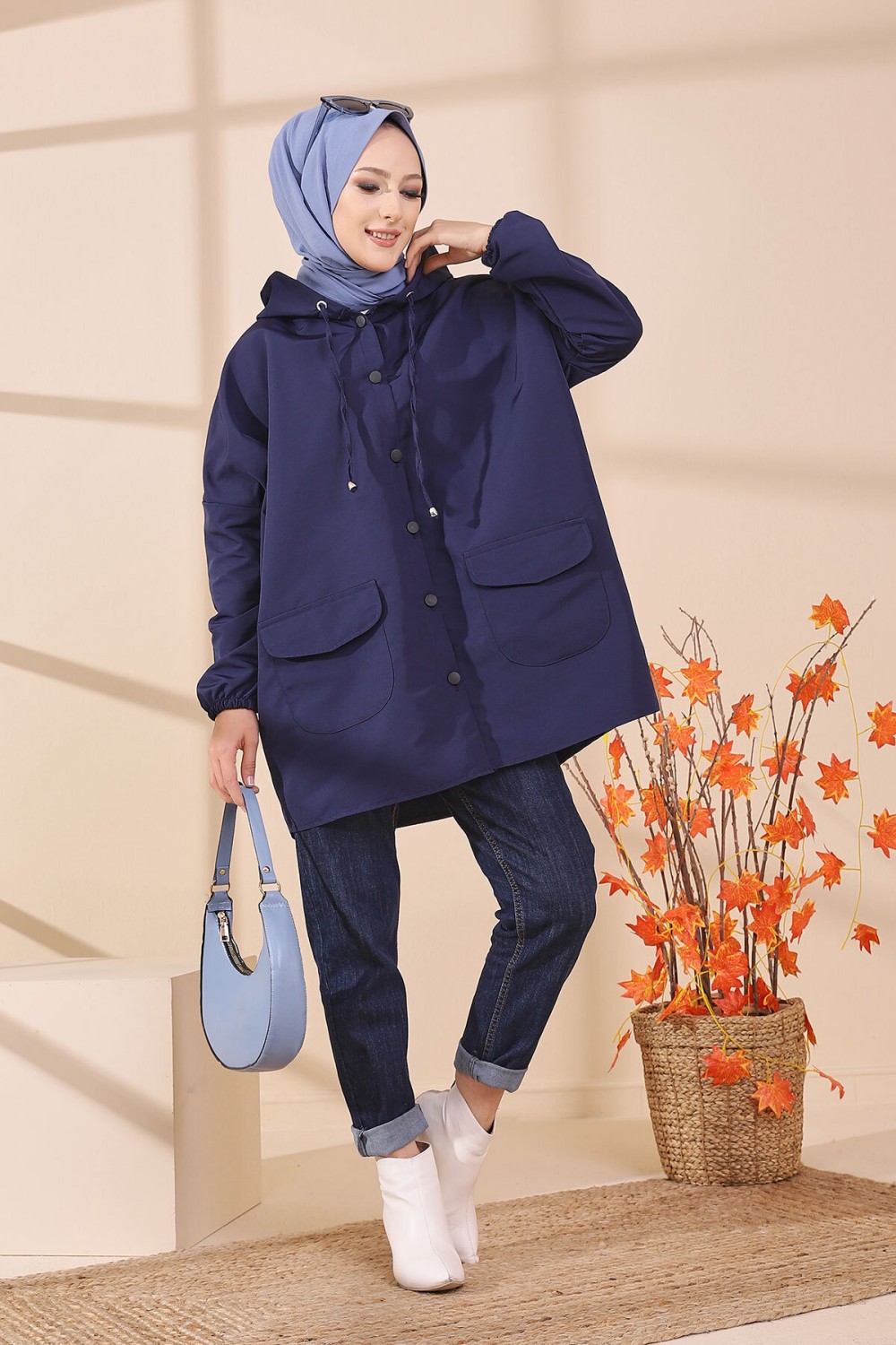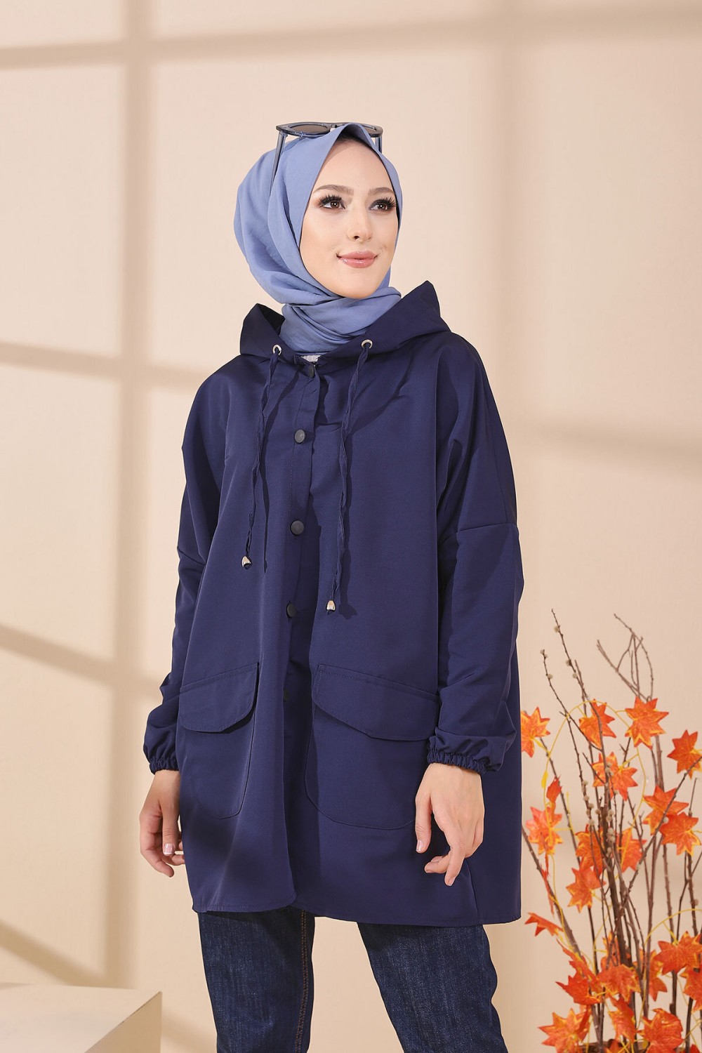 Trench ample - Parka tissu épais pour femme (Vêtement Hijab Saisons Automne Hiver) - Couleur bleu marine