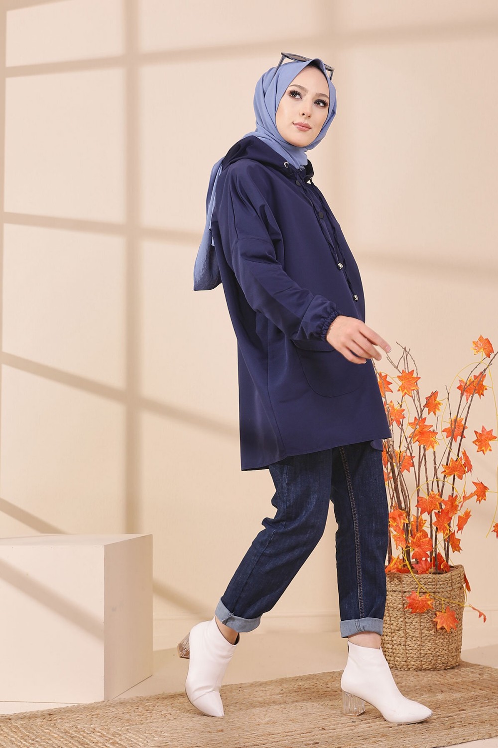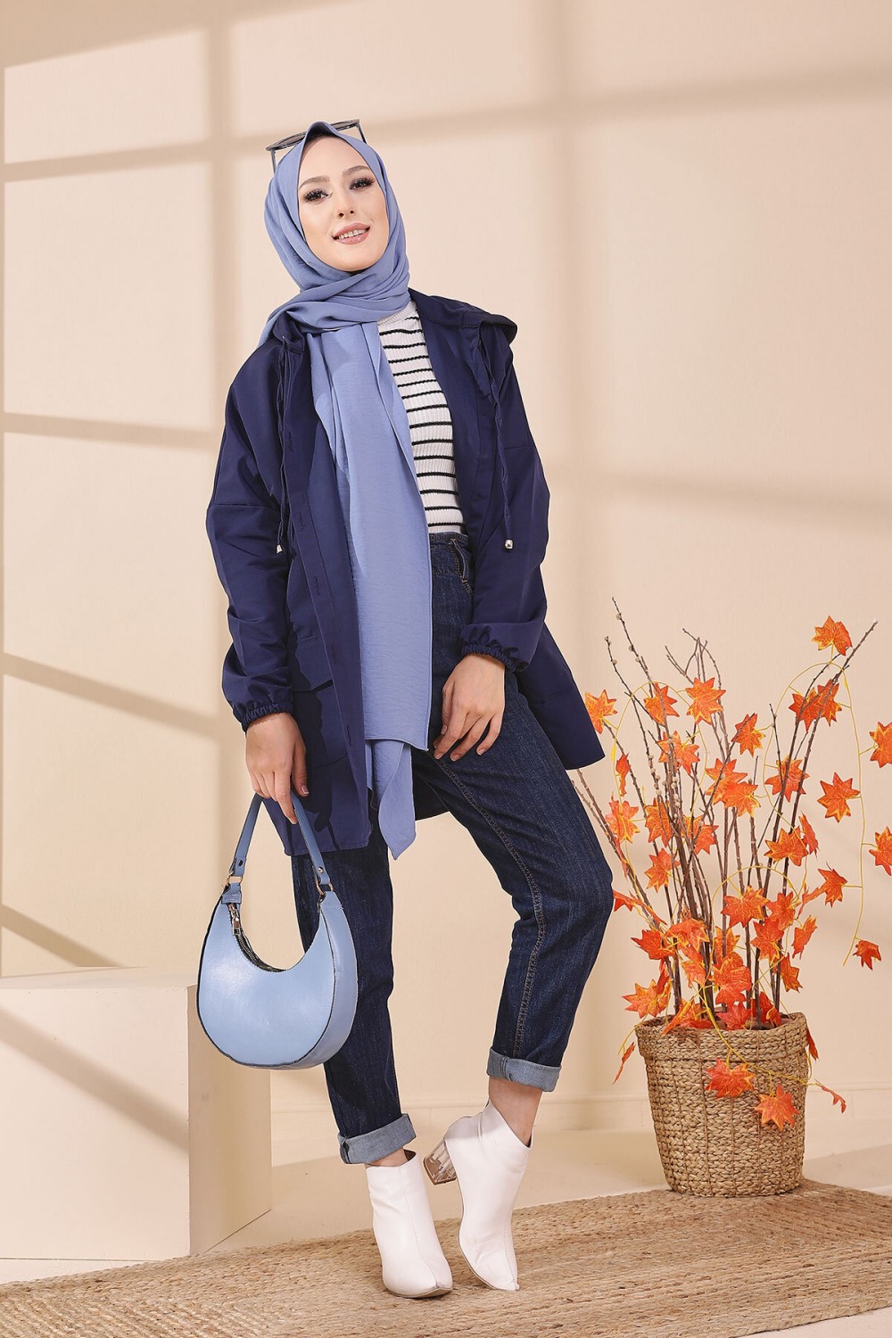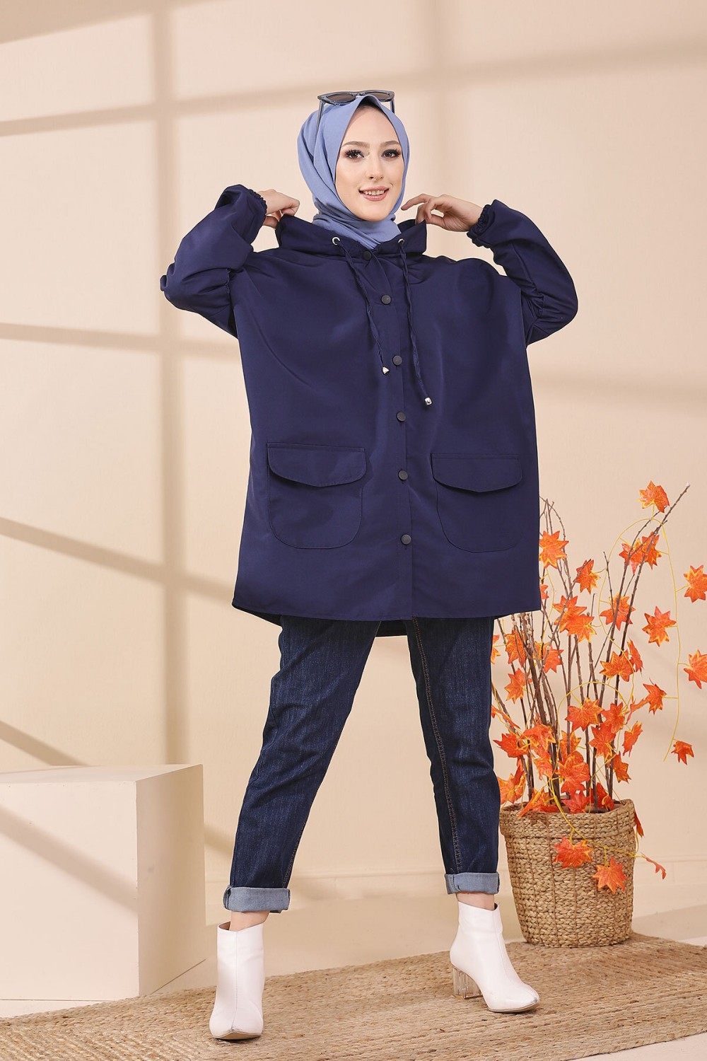Trench ample - Parka tissu épais pour femme (Vêtement Hijab Saisons Automne Hiver) - Couleur bleu marine