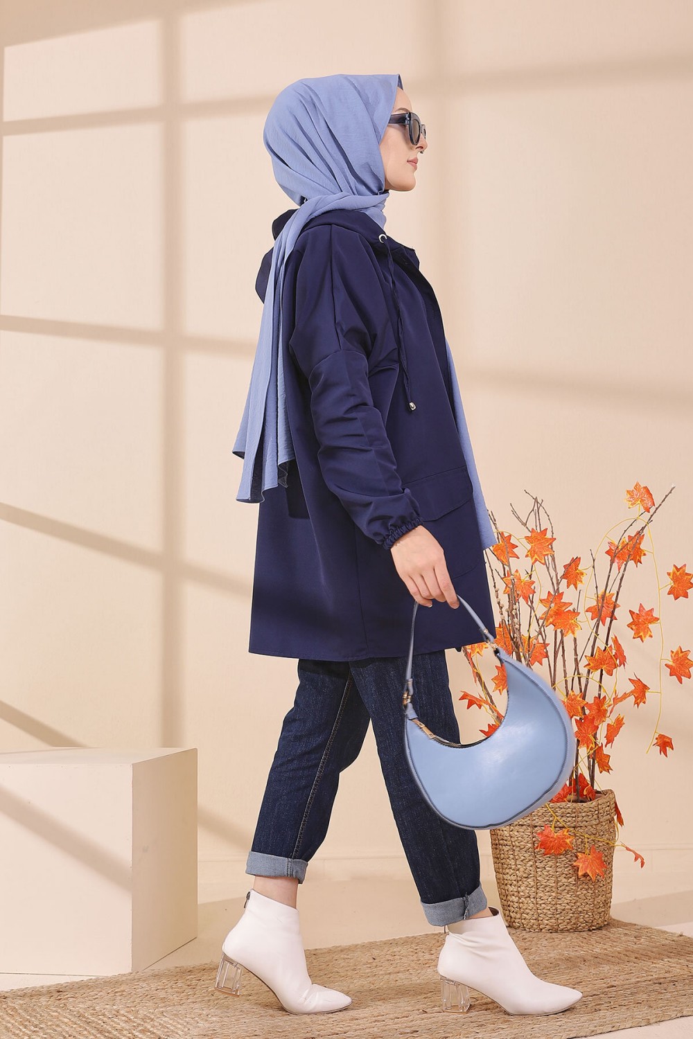Veste longue zippée style sportswear (Robe Sport pour femme voilée) - Couleur bleu marine - REF. 33153 (24.90 €) - En Promotion à 19.00 €
