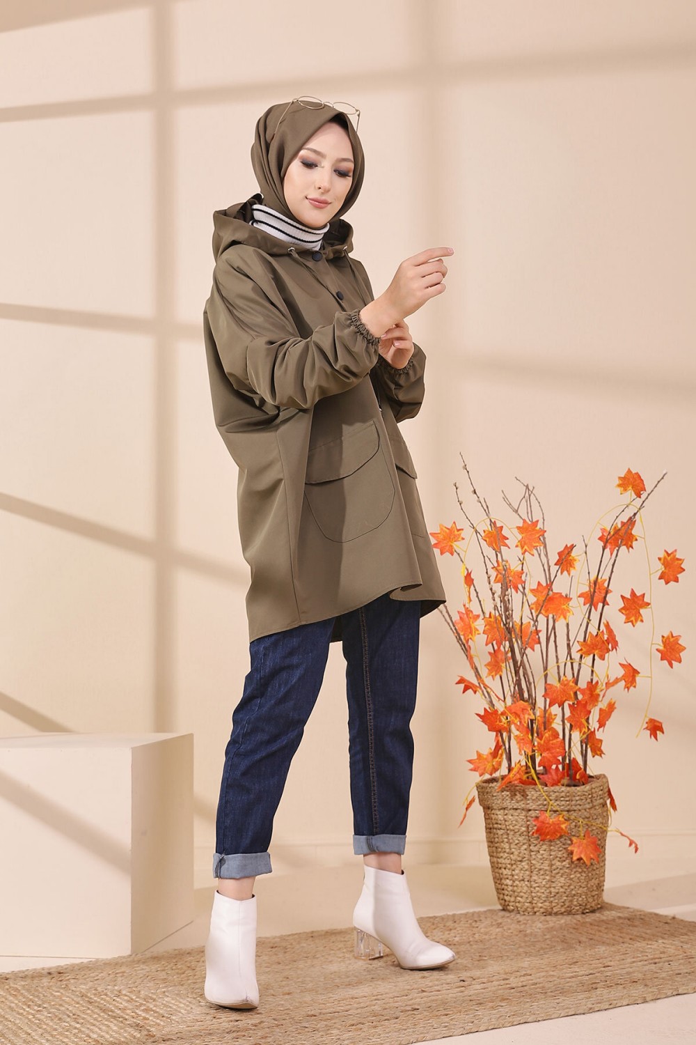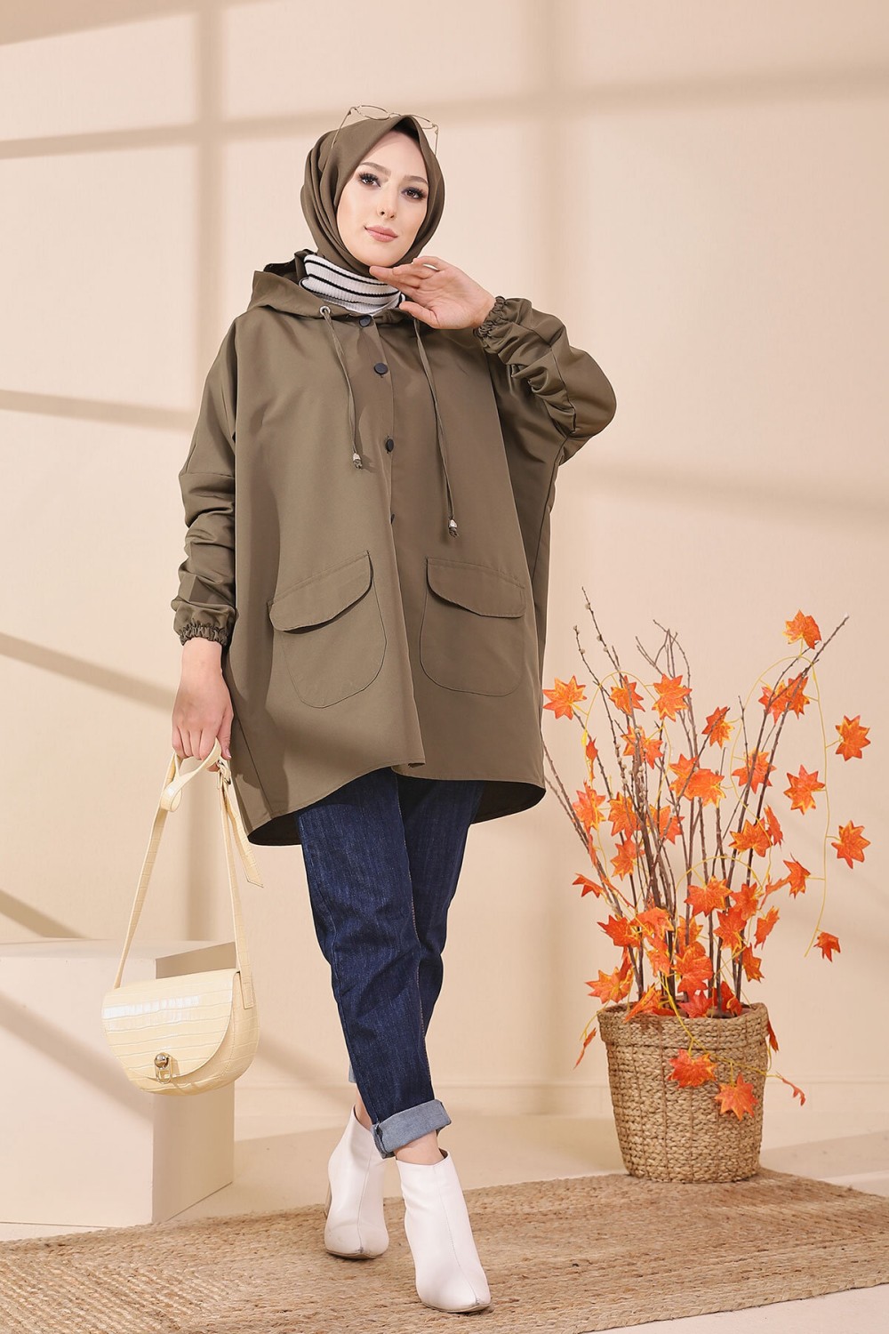 Trench imperméable pour femme (Vetement hijab automne hiver) - Couleur kaki - REF. 34710 (28.00 €) - En Promotion à 24.90 €