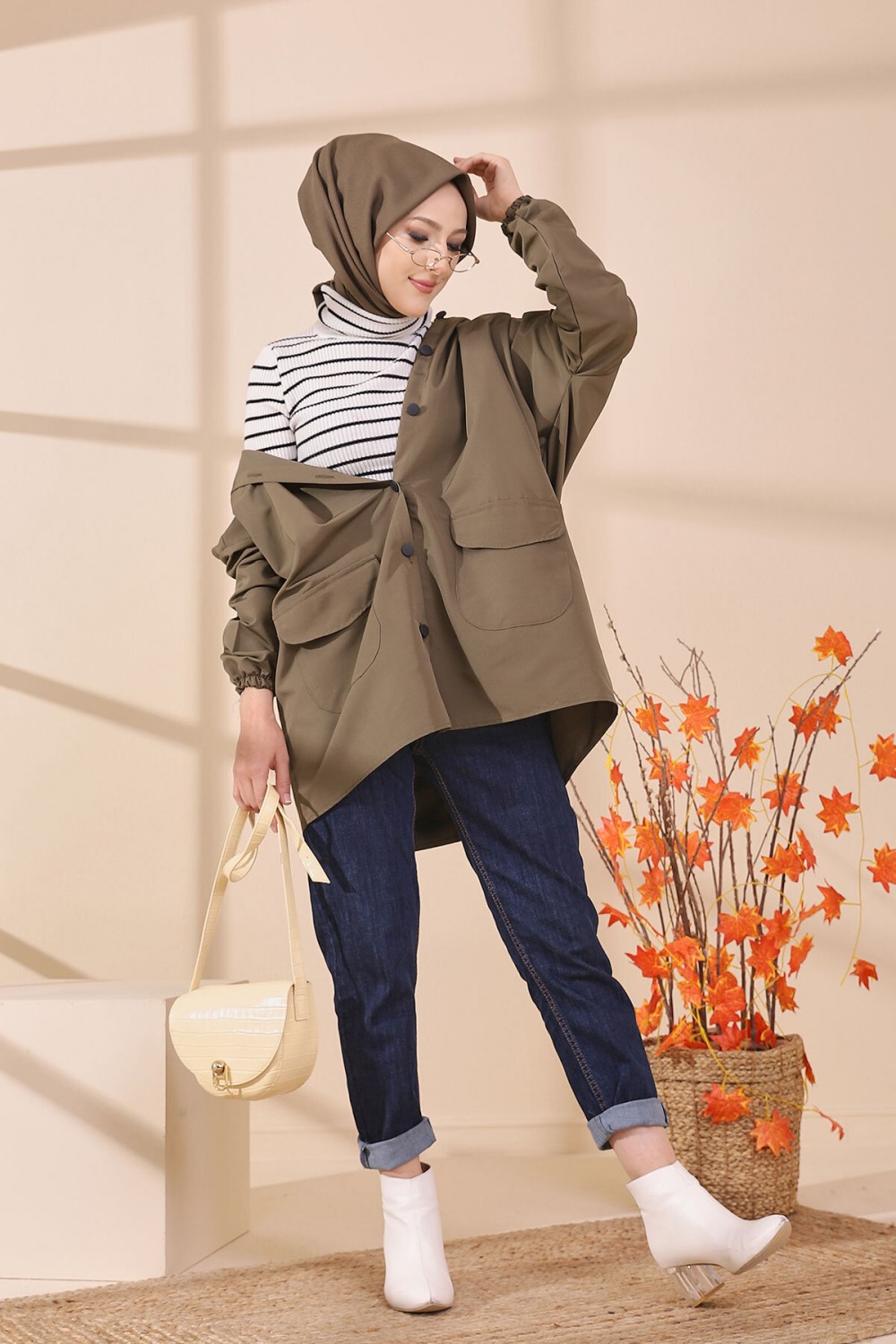 Trench - Veste longue (Manteau léger pour femme voilée) - Couleur kaki - REF. 36464 (29.90 €)