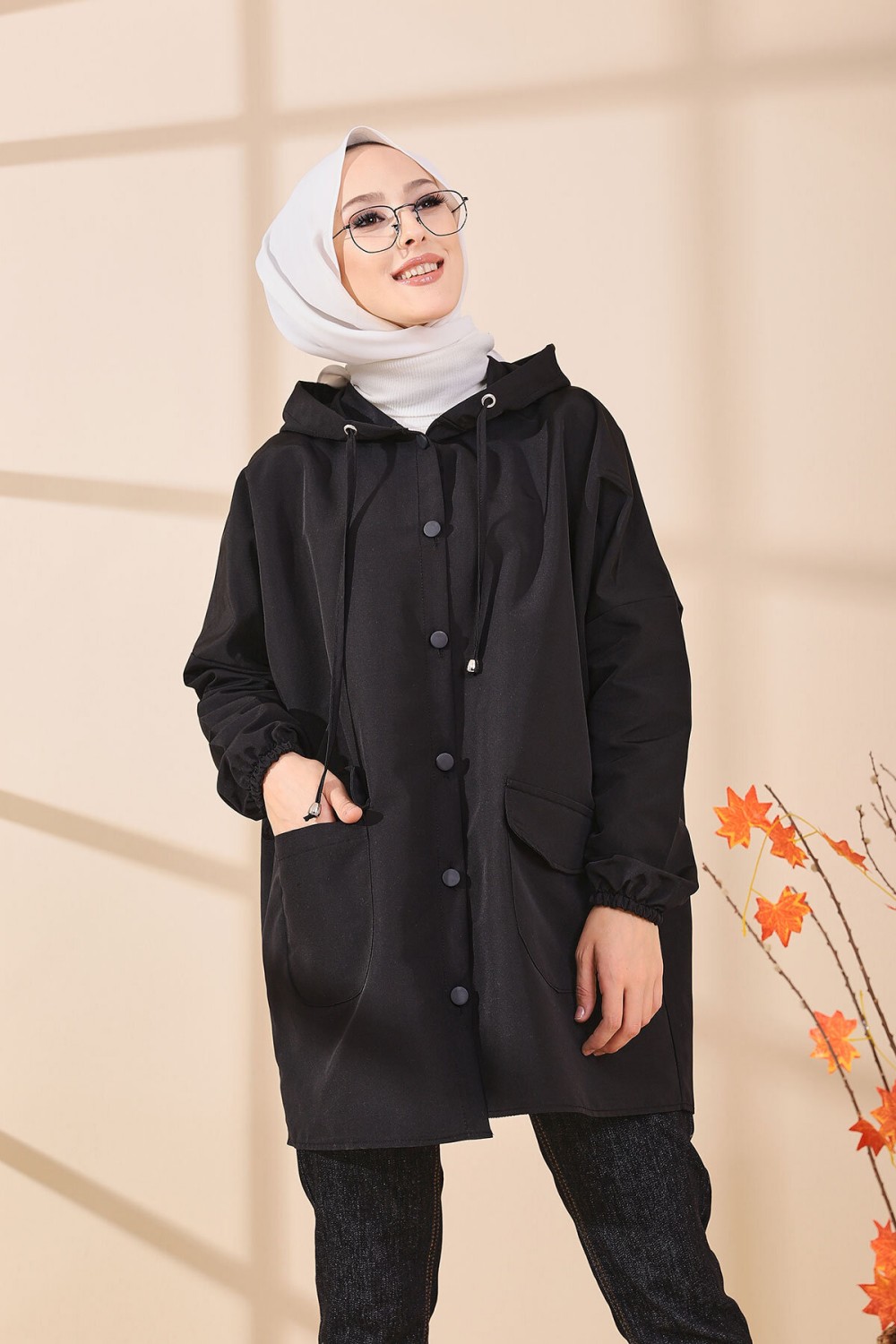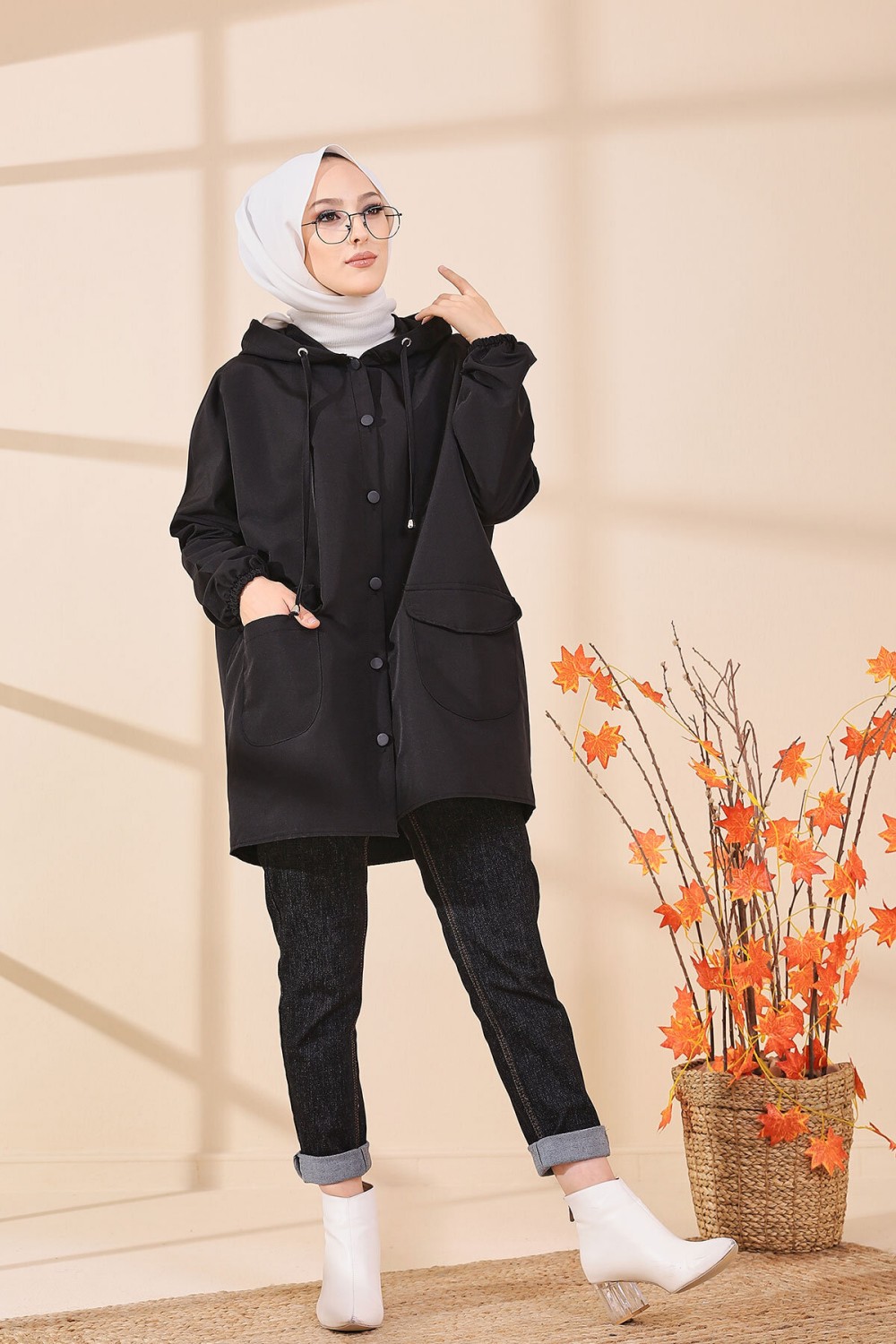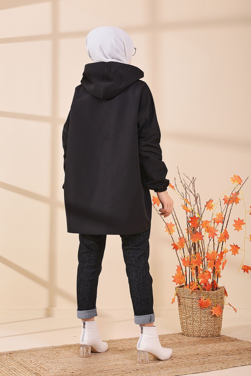 Tunique décontractée Sweat à capuche (Sweat-shirt femme voilée) - Couleur noir - REF. 32273 (18.00 €) - En Promotion à 14.90 €