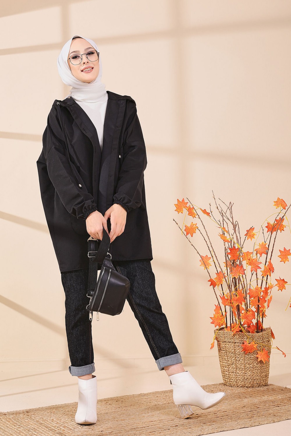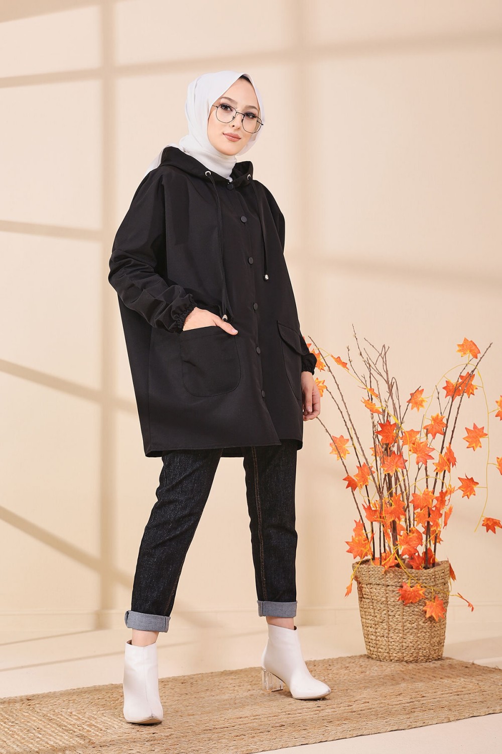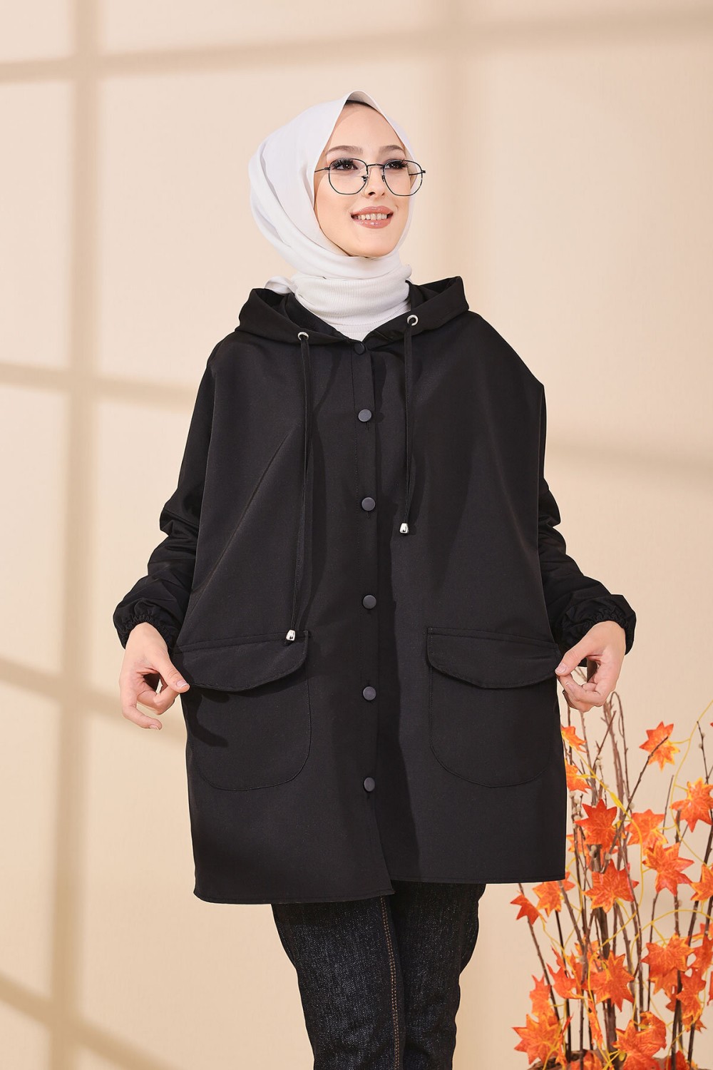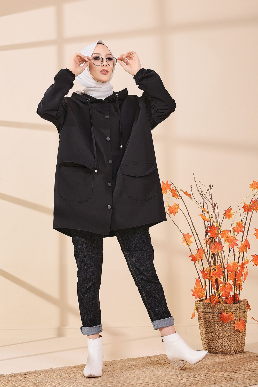 Tunique décontractée Sweat à capuche (Sweat-shirt femme voilée) - Couleur noir - REF. 32273 (18.00 €) - En Promotion à 14.90 €