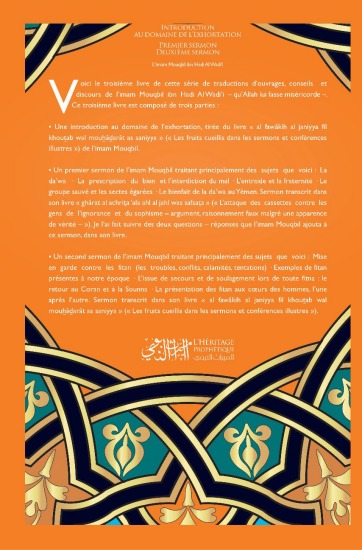 « La da’wa est un acte d’adoration légiféré par la révélation divine, nous ne sommes donc pas des mandataires capable de pouvoir agir comme bon nous semble. Allah – soubhânahou wa ta’âlâ – dit : قُلْ إِنَّمَا أُنْذِرُكُمْ بِالوَحْيِ الأنبياء: ٤٥ « Dis: « Je ne vous avertis que par ce qui m’est révélé ». » [s.21 les prophètes, v.45]. Et Il dit – soubhânahou wa ta’âlâ – : فَمَا أَرْسَلْنَاكَ عَلَيْهِمْ حَفِيظًا إِنْ عَلَيْكَ إِلَّا البَلَاغُ الشورى: ٤٨ « Nous ne t’avons pas envoyé pour assurer leur sauvegarde: tu n’es chargé que de transmettre [le message]. » [s.42 la consultation, v.48]. » [Introduction au domaine de l’exhortation – Premier sermon – Deuxième sermon ; p.18]