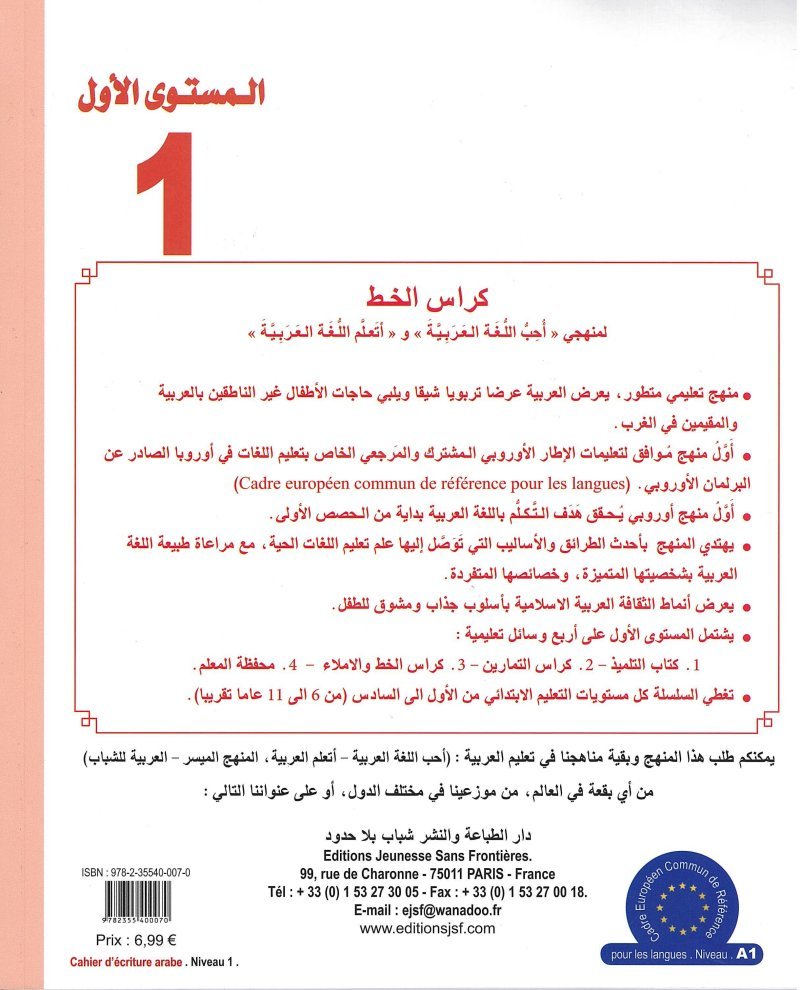 Pour les 2 programmes "J'aime la langue arabe" & "J'apprends la langue arabe" : Cahier d'écriture "Niveau 1".