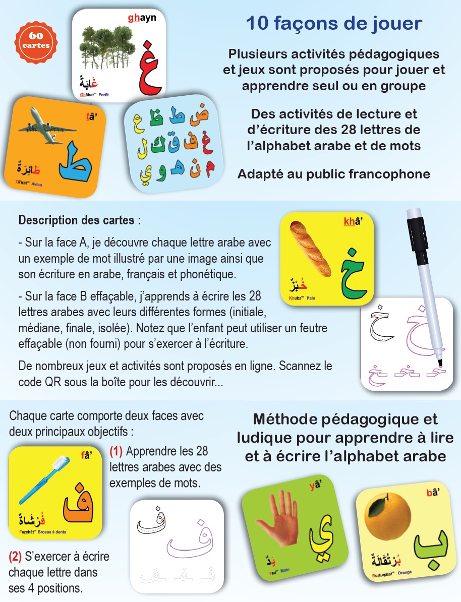 Apprenons la langue arabe avec les cubes de l’alphabet (Boite de Jeux avec 28 Cube de lettres arabes) - هيا نقرأ ونتعلم العربية بالمكعبات - REF. 39091 (19.90 €) - En Promotion à 15.90 €