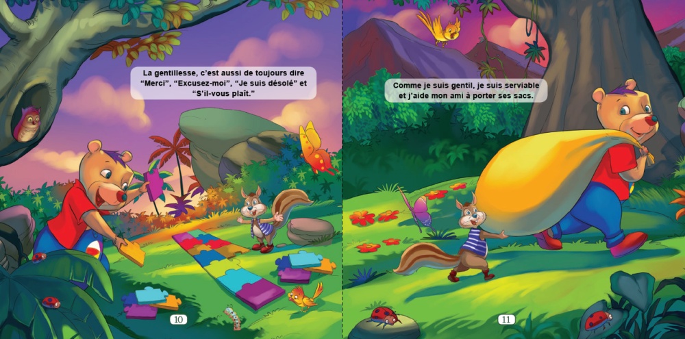 Tome 1 (10 récits - 164 pages) : L'amitié, la modestie, la gentillesse, la persévérance, la justice, le respect, l'honnêteté, la générosité, la responsabilité et la solidarité.