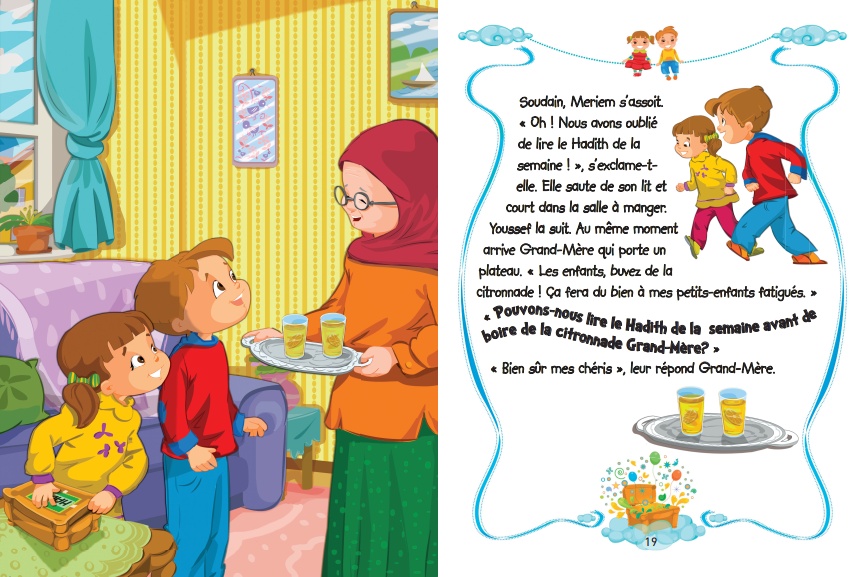 « J’apprends mon hadith » explique aux enfants comment obéir aux enseignements du prophète Mohamed (saw) dans la vie quotidienne. Les personnages principaux, un frère et une sœur, nommés Meriem et Youssef, ont une boîte à Hadith chez eux. Chaque livre de cette série concerne un Hadith particulier. Les membres de la famille essaient d’appliquer ce Hadith dans leur vie tout au long de l’histoire. Les enfants s’identifieront aux héros de l’histoire, ce qui facilitera leur apprentissage et leur pratique de tous les Hadiths.