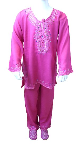 Jabadour ( tunique ) marocaine rose avec des strass pour filles/fillettes Vetement & Accessoire