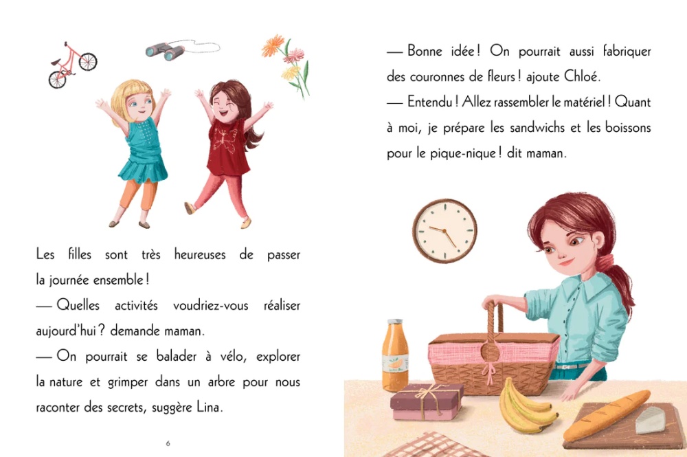Aujourd’hui, c’est le printemps ! Maman organise une sortie au parc avec les enfants. Lina a très envie de se balader à vélo et d’explorer la nature avec son amie Chloé…