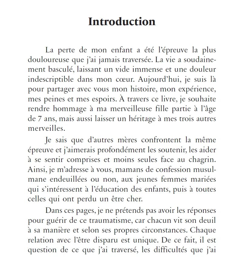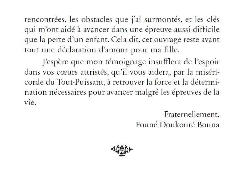 Ce livre est un hommage à ma fille bien-aimée. À travers mon témoignage sur le deuil et ce qui en découle, je souhaite que d'autres personnes endeuillées puissent se reconnaître, mais surtout garder espoir et faire preuve de résilience face à une épreuve aussi lourde que la perte d'un enfant.