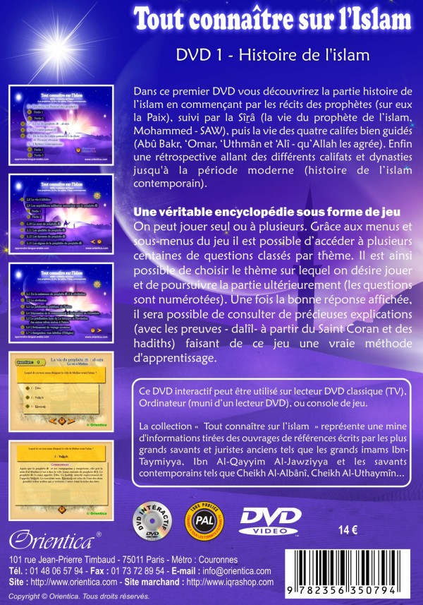 Jeu Tout connaître sur l'islam : Le Dogme Islamique (Al-'Aqîda) - Quiz pour toute la famille en DVD - REF. 15172 (14.00 €) - En Promotion à 9.90 € |