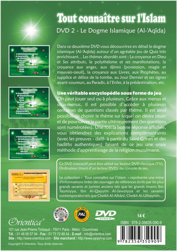 Jeu Tout connaître sur l'islam : Le Dogme Islamique (Al-'Aqîda) - Quiz pour toute la famille en DVD - REF. 15172 (14.00 €) - En Promotion à 9.90 € |