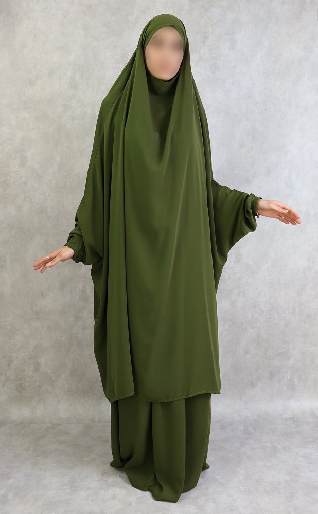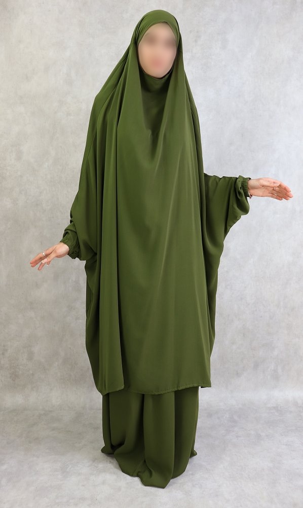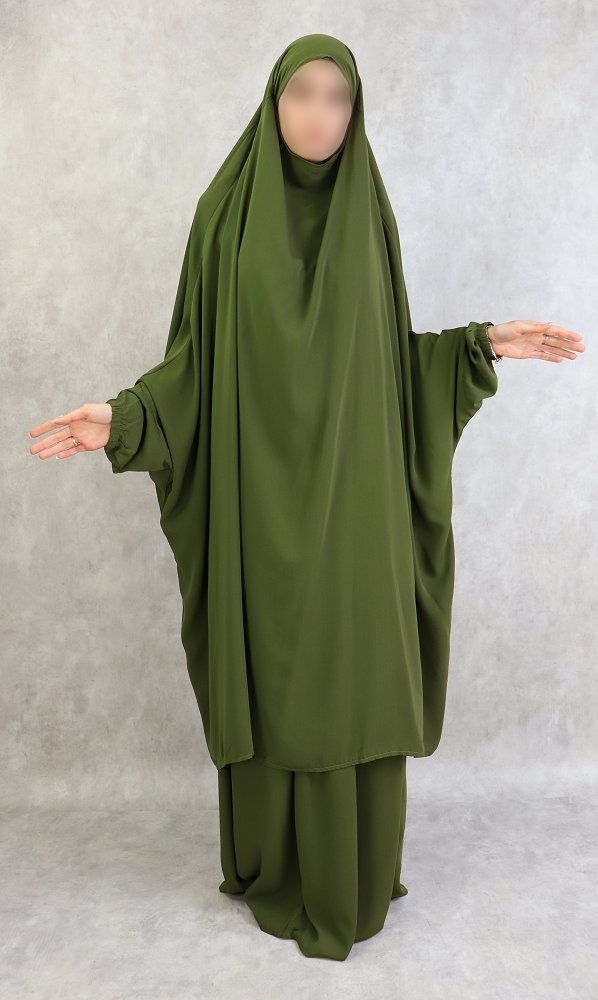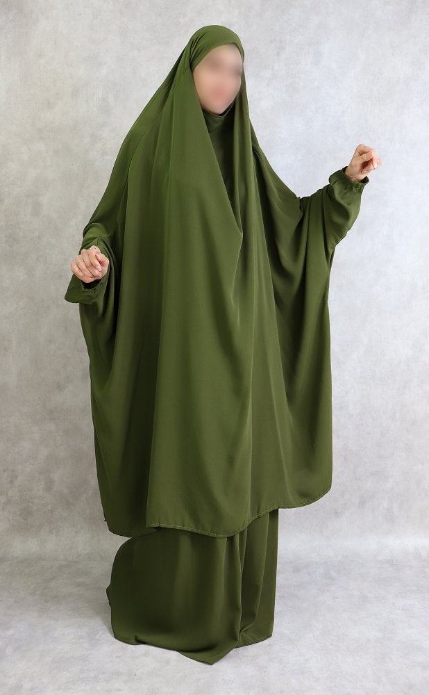 Jilbab adulte 2 pieces - Cape + Jupe evasee - Couleur vert kaki fonce