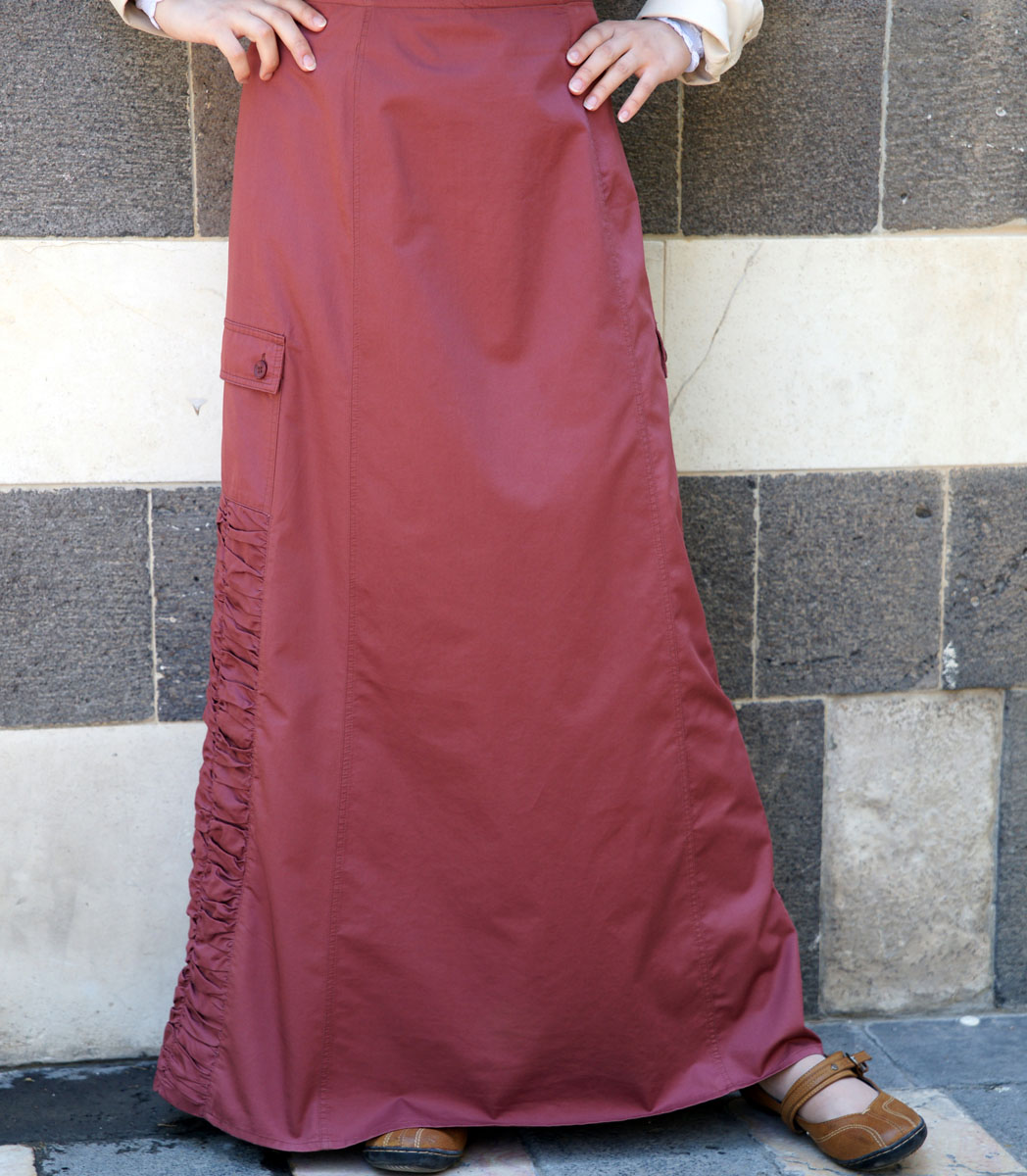This fun, youthful skirt features ruched side panels and patch pockets and comes in our new satin cotton fabric. Perfect for the sister looking for a little bit of urban casual edge.