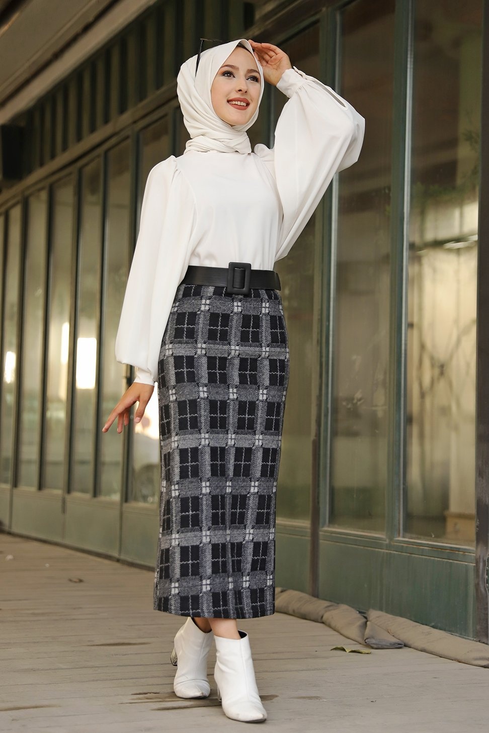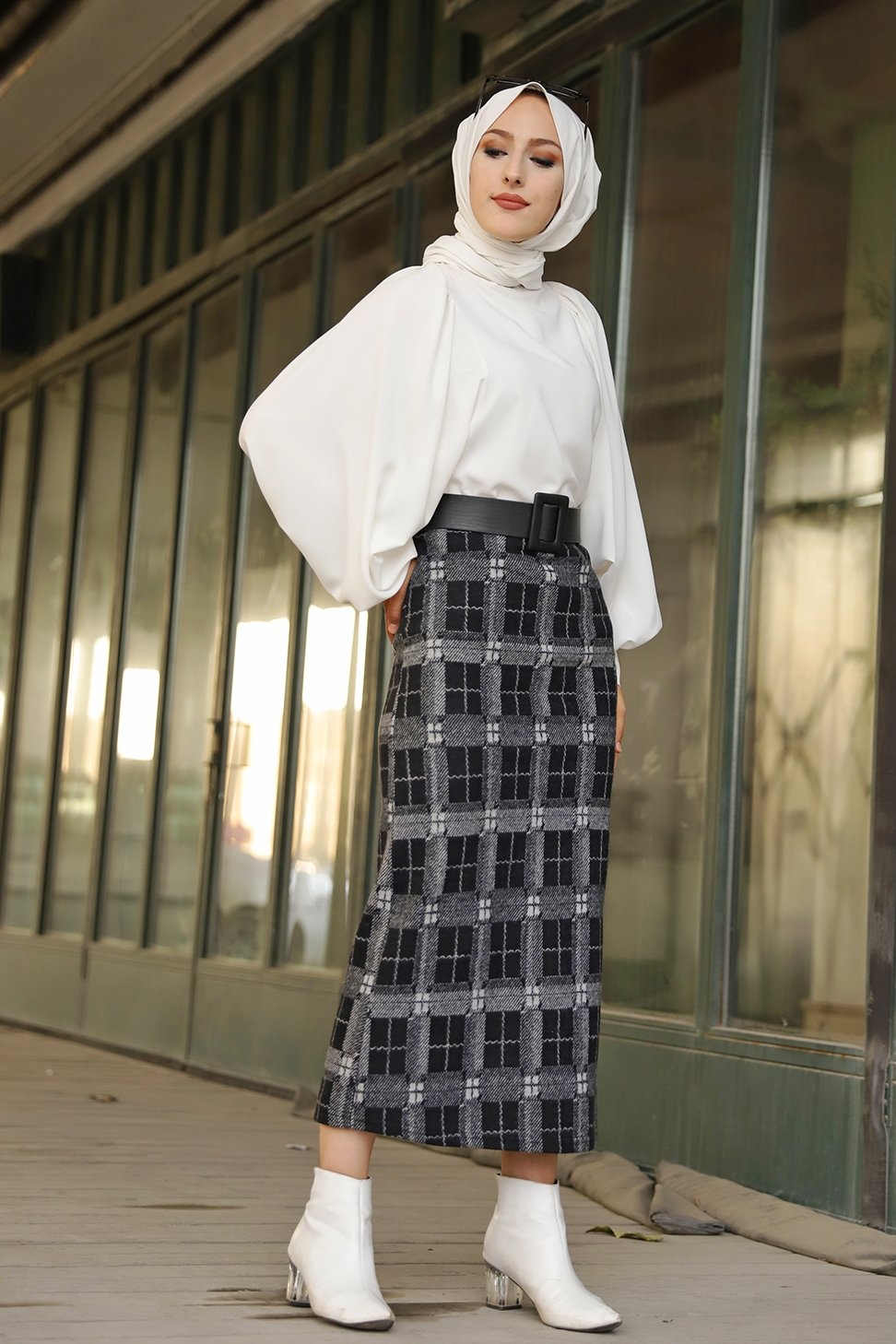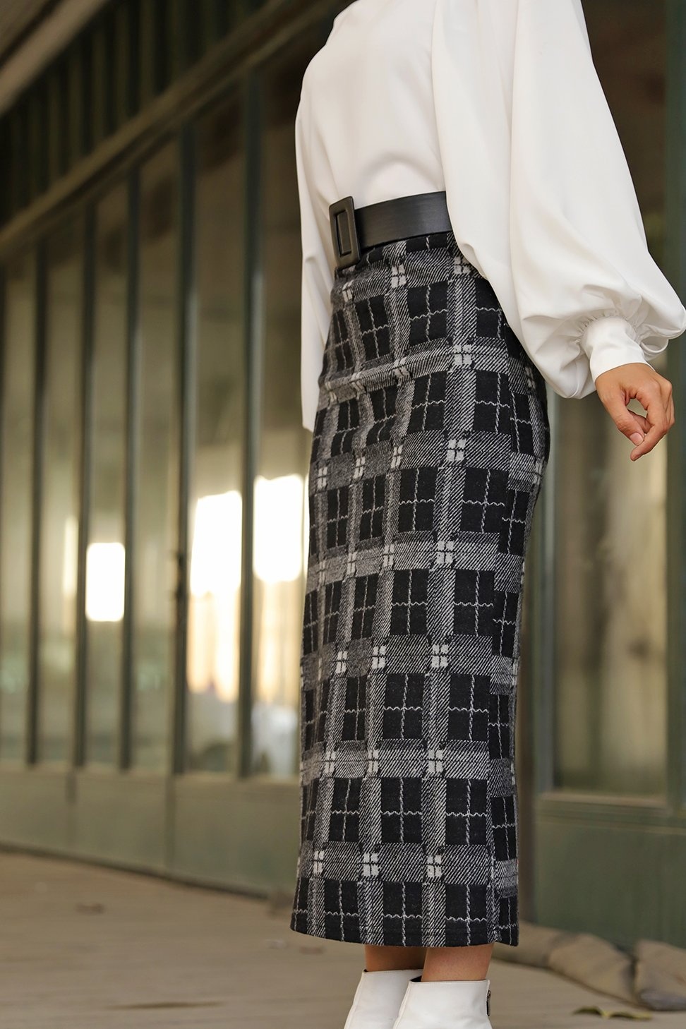 Jupe chaude pour femme (Vetement Saison Automne Hiver) - Couleur noir et gris