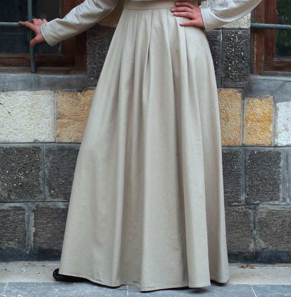 Jupe évasée avec plis. Lavage machine. Description: full length; hidden side zipper and button; waist pleats. Imported. Material: cotton 100% Care: machine wash.