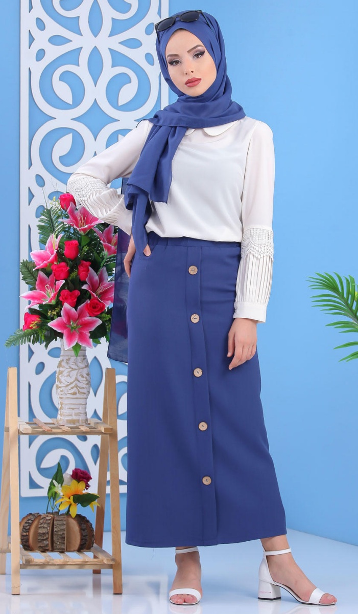 Jupe longue à boutons pour femme - Couleur bleu Vetement & Accessoire