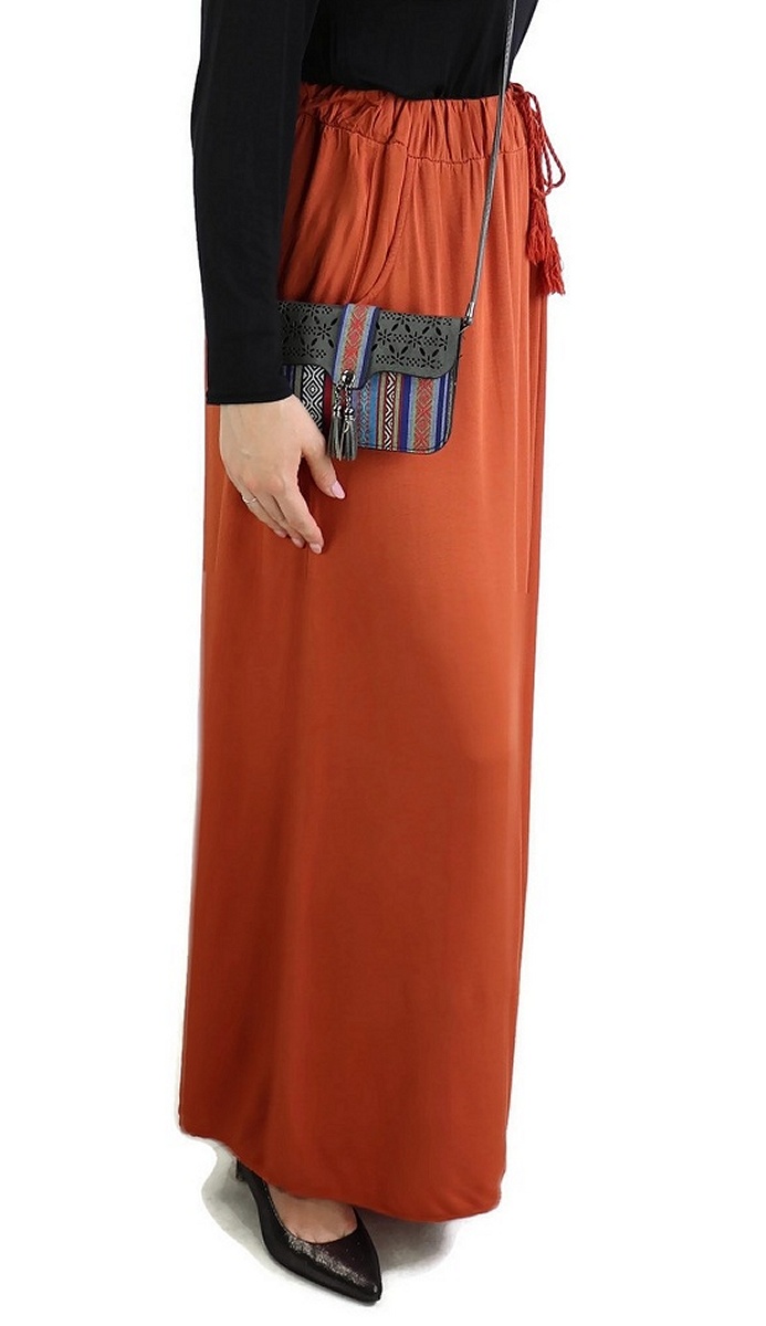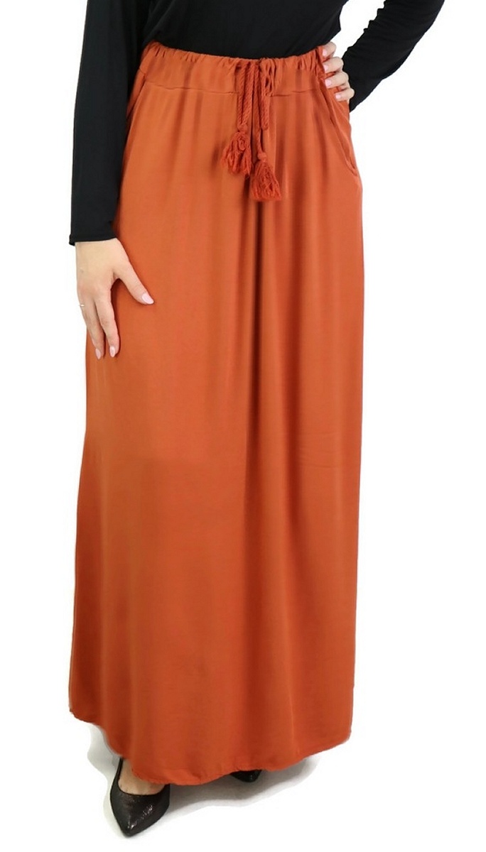 Succombez à cette jupe qui dispose de deux poches sur les côtés pour ranger vos effets, à la taille élastiquée avec cordelettes tressées que vous pouvez serrer ou nouer. Sa matière fluide et son tissu en viscose léger font d'elle la pièce à acquérir ce printemps-été.